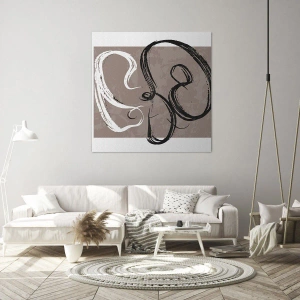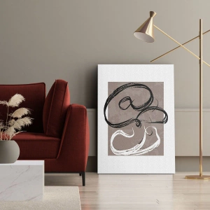 - Ein künstlerisches Gemälde mit einer schwarz-weißen Abstraktion auf beigem Hintergrund. Ein minimalistisches und elegantes Motiv, perfekt für moderne und stilvolle Innenräume.
