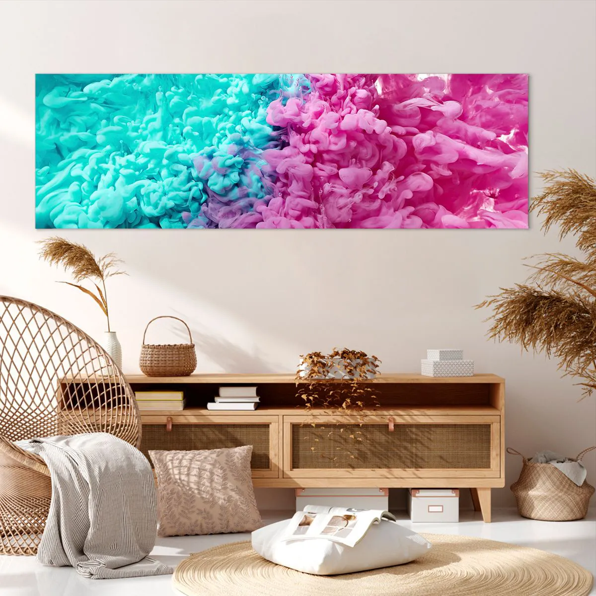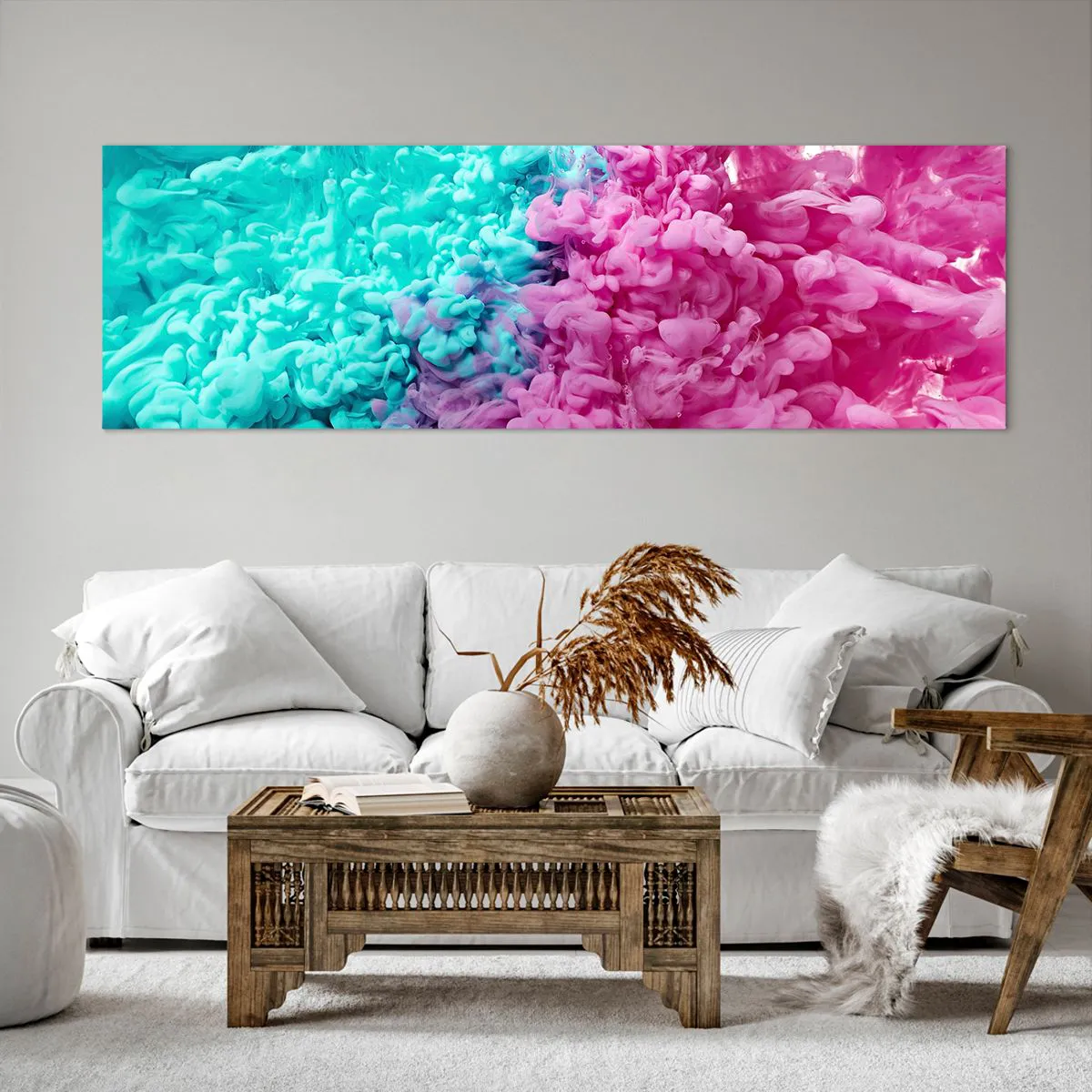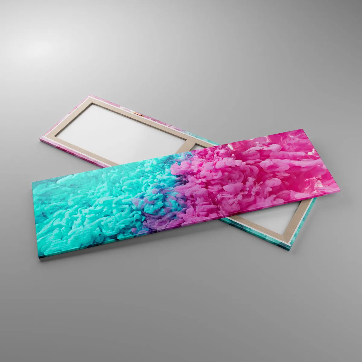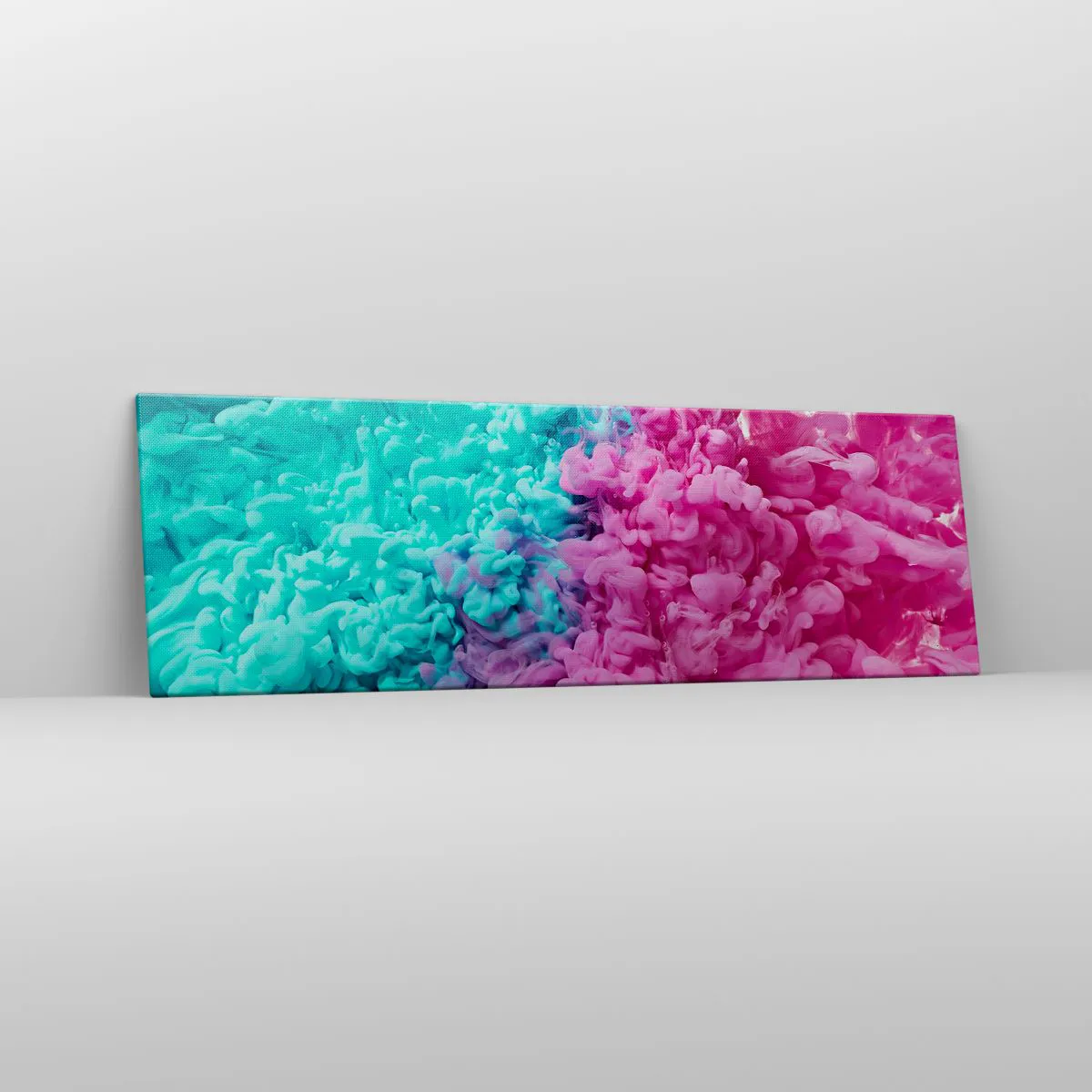 Bild auf Leinwand - Leinwandbild - Bunte Wellen aus Türkis und Pink in abstrakter Form - 160x50cm - Letzte Begegnung - Moderne Wanddekoration für Wohnzimmer und Schlafzimmer ARTTOR