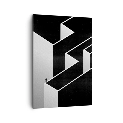 Die Leinwand wird über den Rahmen gespannt. Die Seiten und Kanten werden gedruckt, um das Bild fortzusetzen. Das Bild ist fertig zum Aufhängen an der Wand. Jedes Produkt hat einen am Rahmen befestigten Anhänger und ein Montageset (Schraube + Stift).