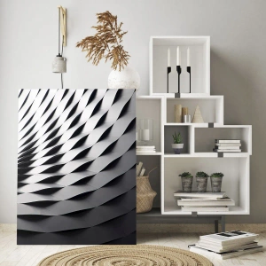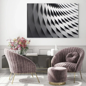 Glasbild - Bild auf glas - Eine abstrakte schwarz-weiße Struktur, die an wellenförmige Formen erinnert. - 120x80cm - Auf der Oberfläche der Wellen - Moderne Wanddekoration für Wohnzimmer und Schlafzimmer ARTTOR
