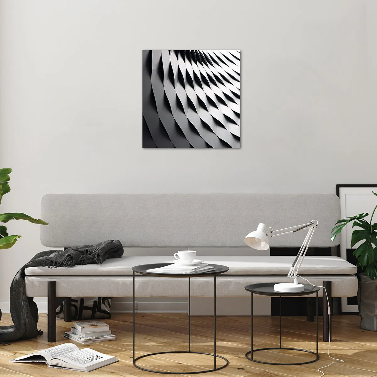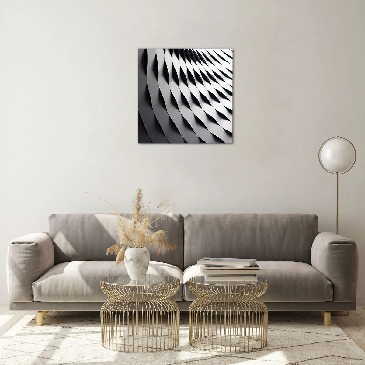 • Modern, Abstrakt, Stahl, 3D, Abstrakt, Schwarzweiß, Für das Büro, für das Arbeitszimmer, für das Esszimmer, für den Flur, für das Wohnzimmer, für das Schlafzimmer, Grau, Schwarz und Weiß, Quadrat