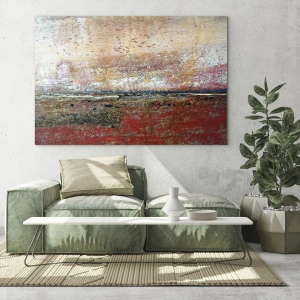 Glasbild - Bild auf glas - Abstrakte Textur in Rot- und Ockertönen - 50x70cm - Vielleicht liegt es am Meer - Moderne Wanddekoration für Wohnzimmer und Schlafzimmer ARTTOR