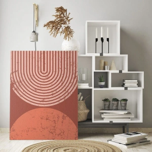 Glasbild - Bild auf glas - Geometrische Muster in Terrakotta-Tönen auf Vintage-Hintergrund - 70x100cm - Enge Beziehung - Moderne Wanddekoration für Wohnzimmer und Schlafzimmer ARTTOR