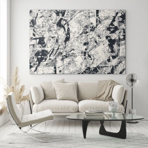 Glasbild - Bild auf glas - Abstrakte Komposition in Schwarzweiß mit dynamischem Layout - 140x50cm - Durchdringung der Gegensätze - Moderne Wanddekoration für Wohnzimmer und Schlafzimmer ARTTOR