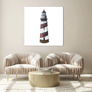 Glasbild - Bild auf glas - Ein Cartoonbild eines Leuchtturms mit roten und weißen Streifen auf minimalistischem Hintergrund. - 70x100cm - Immer auf der Hut - Moderne Wanddekoration für Wohnzimmer und Schlafzimmer ARTTOR