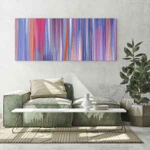 • Eine abstrakte Komposition aus vertikalen Streifen in intensiven Rosa-, Lila- und Blautönen. Dieses moderne Design passt perfekt zu zeitgenössischen oder künstlerischen Innenräumen.