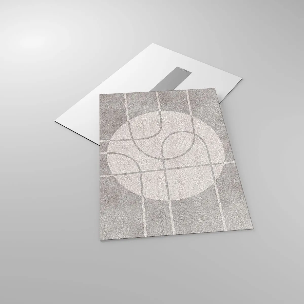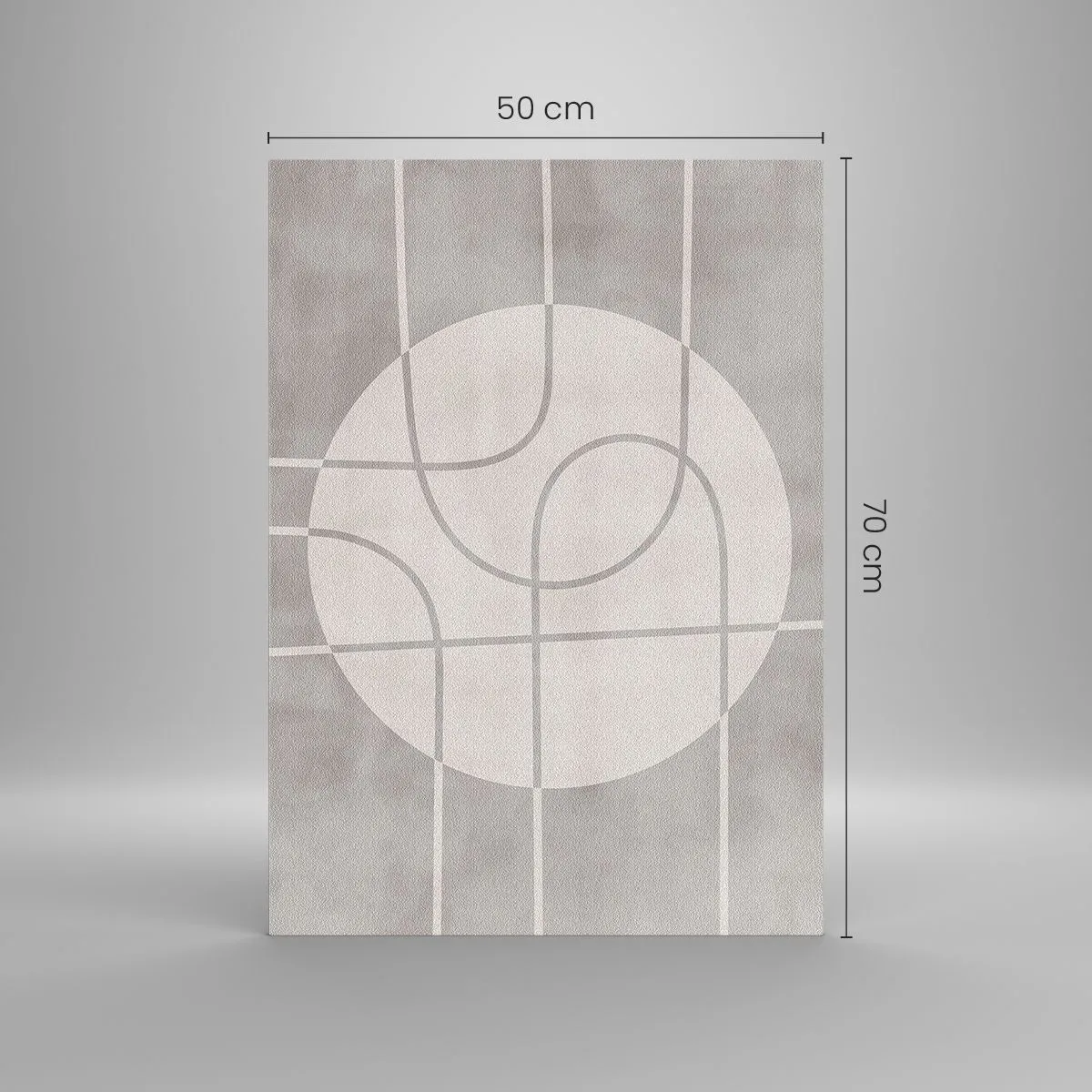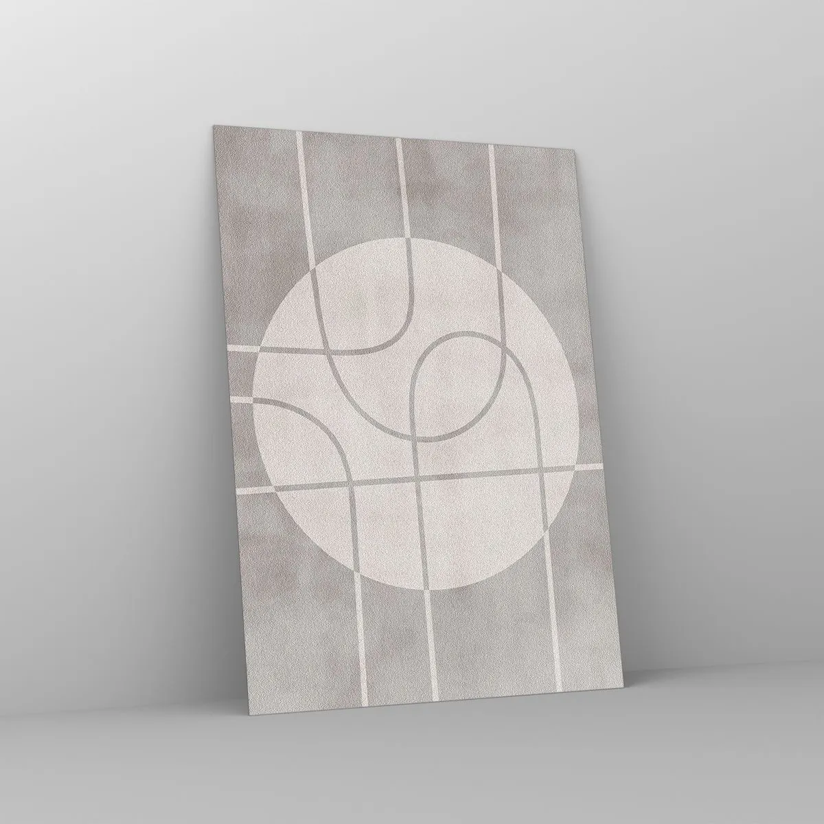 Glasbild - Bild auf glas - Beige Linien und Kreise bilden eine geometrische Komposition - 50x70cm - Kreisförmig und geradeaus - Moderne Wanddekoration für Wohnzimmer und Schlafzimmer ARTTOR