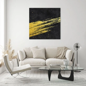 Glasbild - Bild auf glas - Ein goldener Pinsel auf schwarzem Hintergrund in dynamischer, abstrakter Form - 120x80cm - Sprung in den Hyperraum - Moderne Wanddekoration für Wohnzimmer und Schlafzimmer ARTTOR