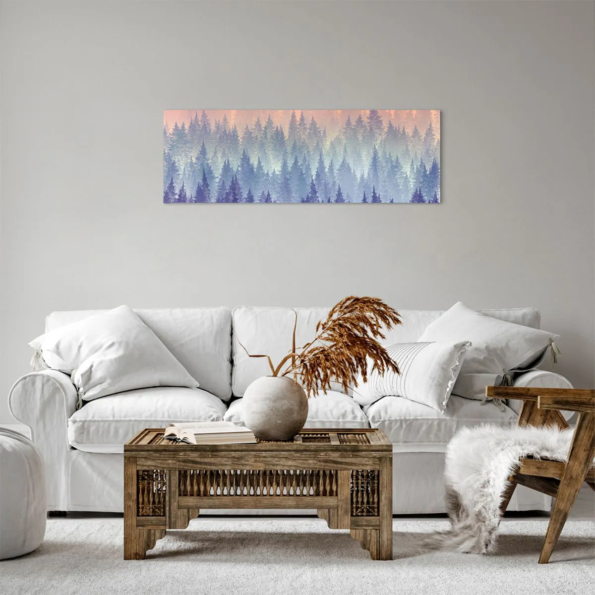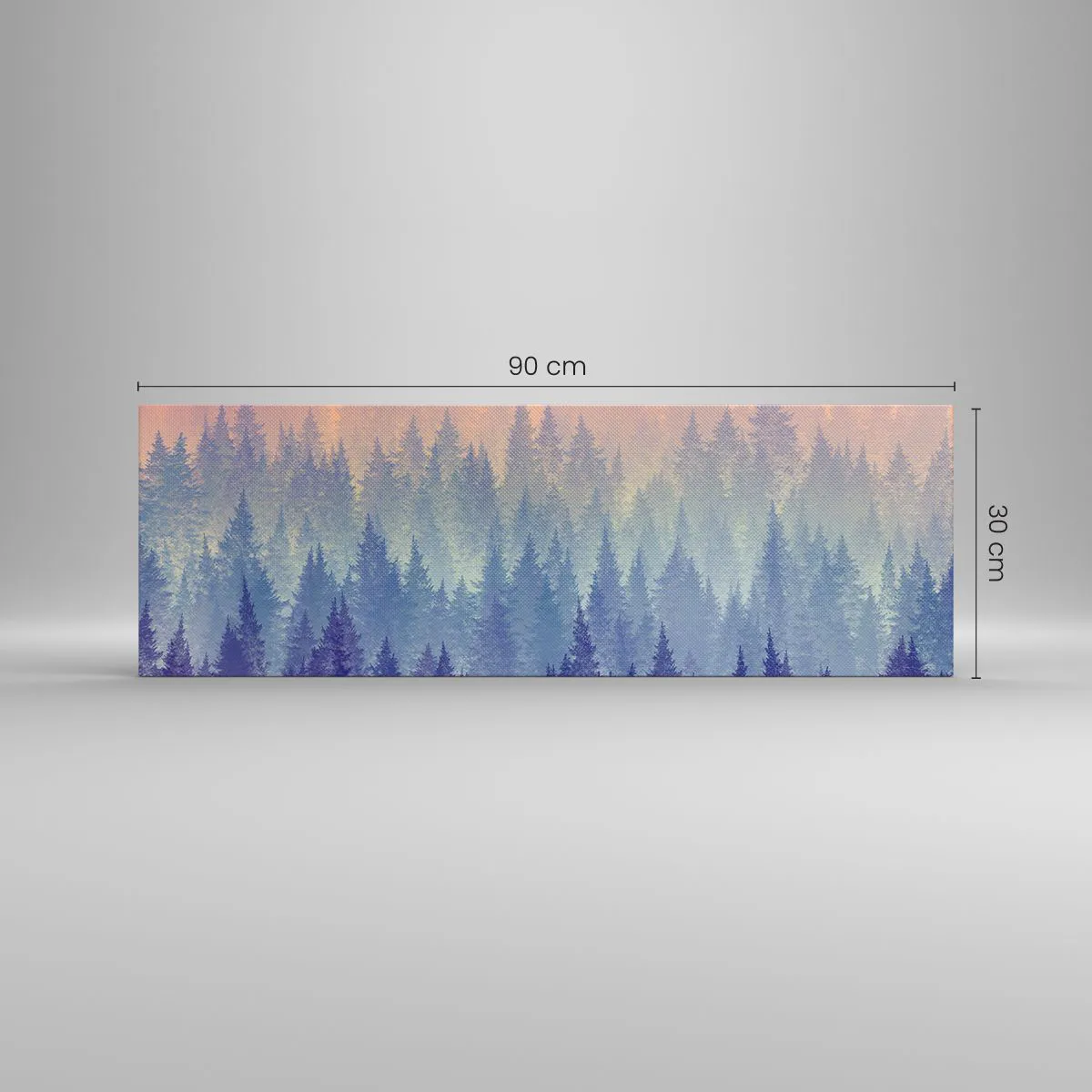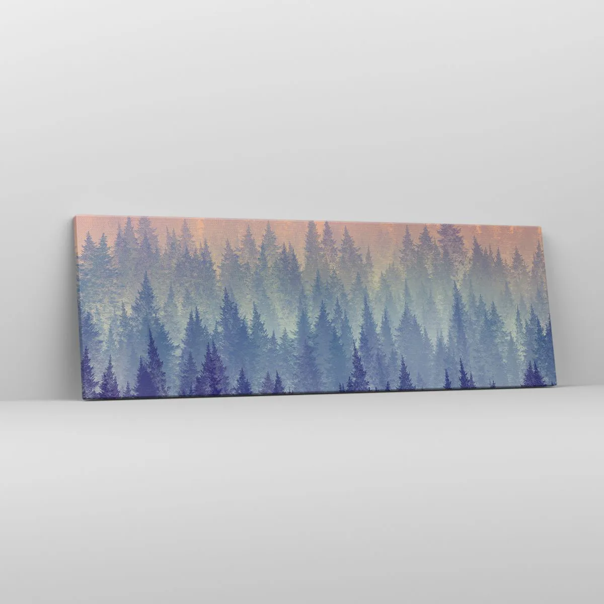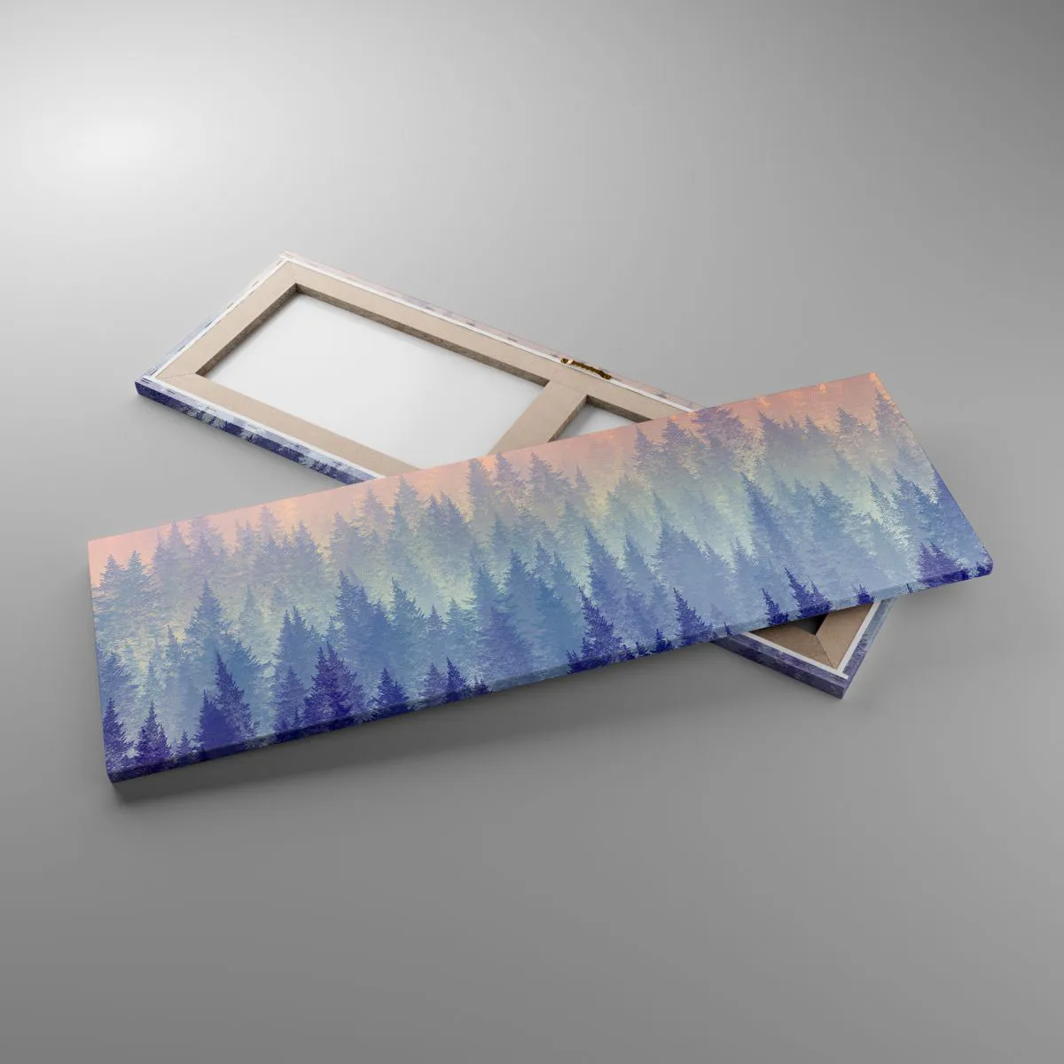 Die Leinwand wird über den Rahmen gespannt. Die Seiten und Kanten werden gedruckt, um das Bild fortzusetzen. Das Bild ist fertig zum Aufhängen an der Wand. Jedes Produkt hat einen am Rahmen befestigten Anhänger und ein Montageset (Schraube + Stift).