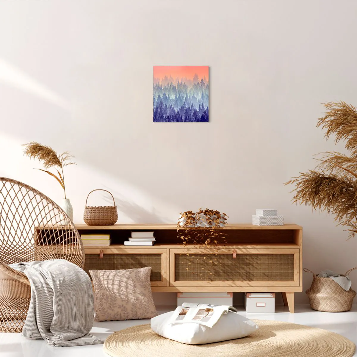 Wir verwenden ökologische, geruchslose und langlebige Tinten mit tiefer Farbsättigung. Durch moderne Drucktechnik wird der Druck präzise platziert, wobei die sichtbare Struktur der Leinwand erhalten bleibt