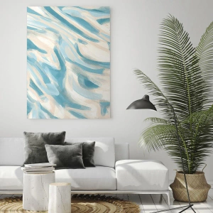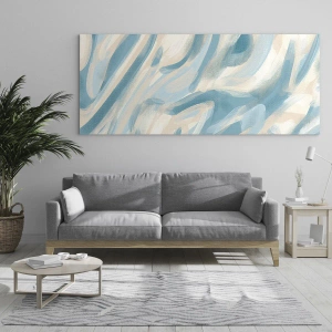Glasbild - Bild auf glas - Abstrakte blaue Streifen auf hellem Hintergrund - 120x50cm - Frühlingsbrisen - Moderne Wanddekoration für Wohnzimmer und Schlafzimmer ARTTOR