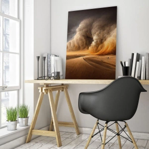 Glasbild - Bild auf glas - Ein Sandsturm über der Wüste in dramatischem Licht - 120x80cm - Zorn der Wüste - Moderne Wanddekoration für Wohnzimmer und Schlafzimmer ARTTOR