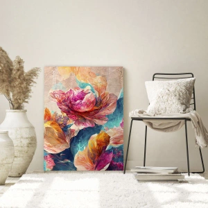 • Blumen, Pastell, Kunst, Botanik, Blumen, Kunst, Für das Büro, für das Arbeitszimmer, für das Esszimmer, für den Flur, für das Wohnzimmer, für das Schlafzimmer, Braun, Blau, Orange, Rosa, Bunt, Vertikal