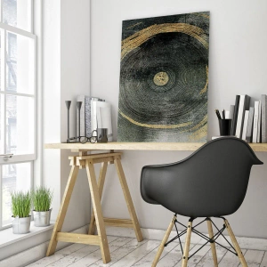 Glasbild - Bild auf glas - Konzentrische Kreise mit goldenen Akzenten - 160x50cm - Veränderung und Beständigkeit - Moderne Wanddekoration für Wohnzimmer und Schlafzimmer ARTTOR