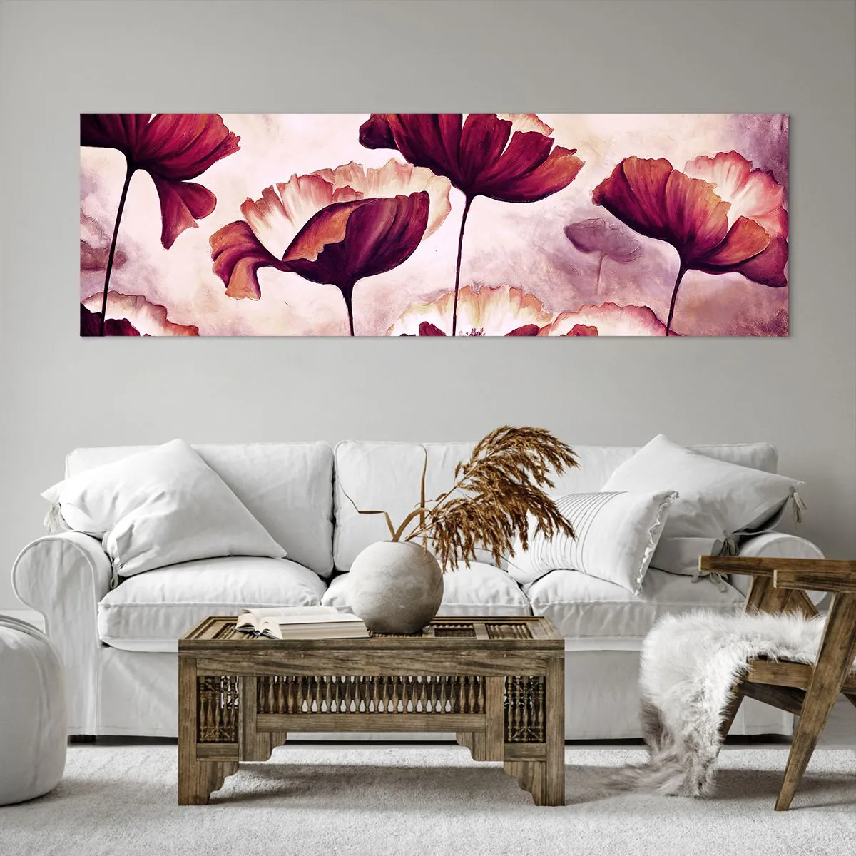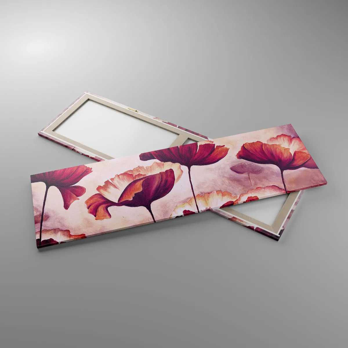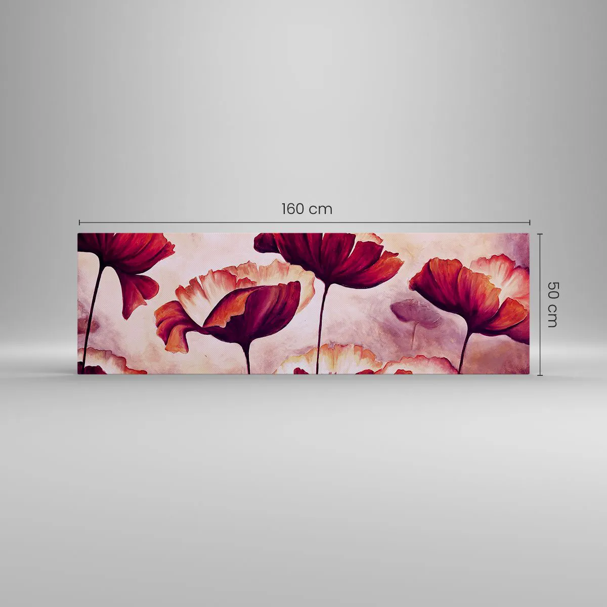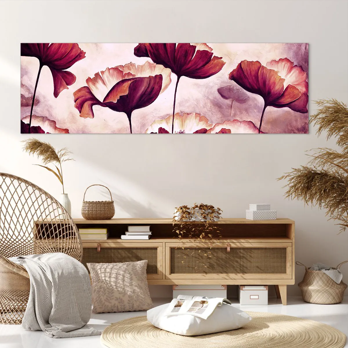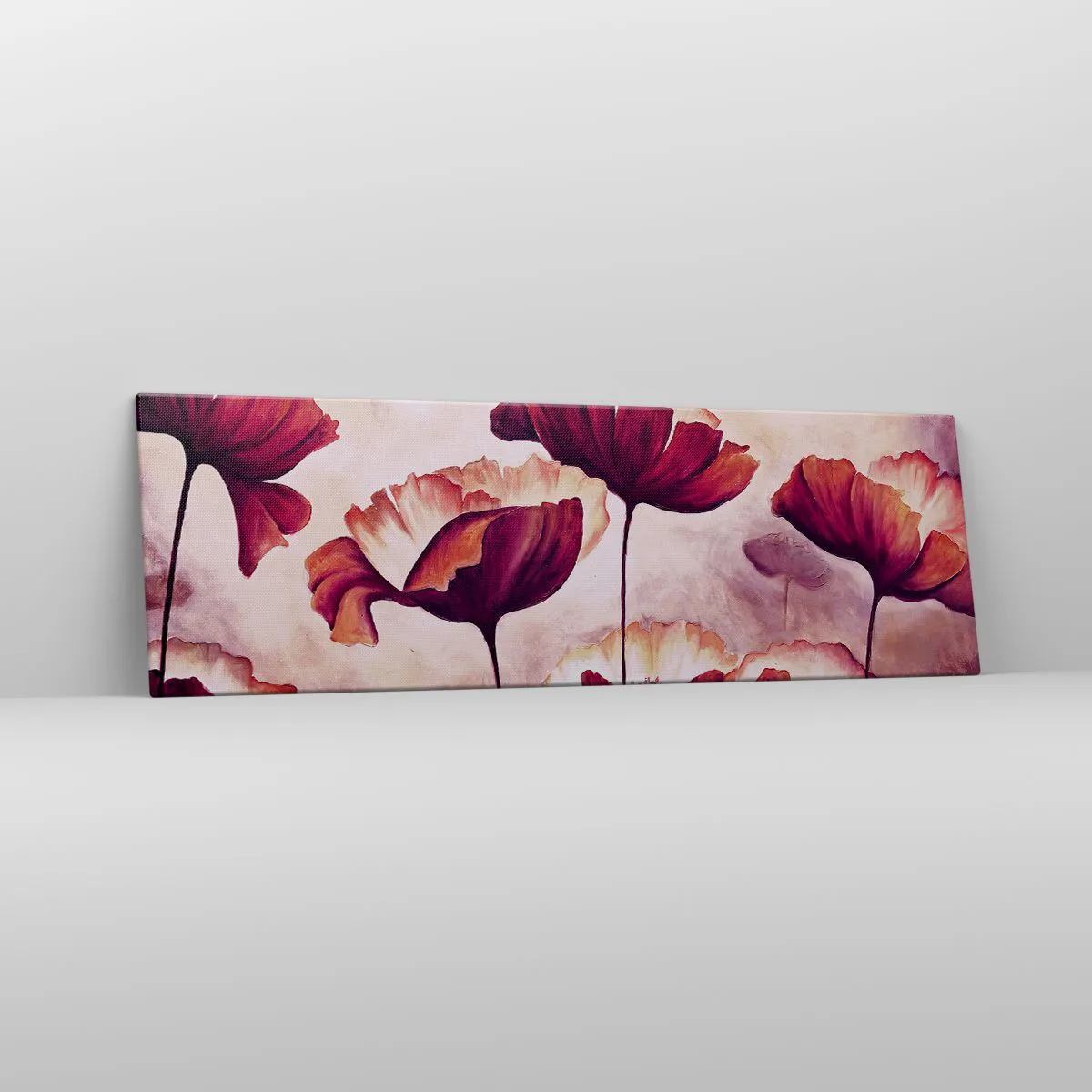 Bild auf Leinwand - Leinwandbild - Blumen in Rot- und Weißtönen auf dezentem Hintergrund - 160x50cm - Rotes und weißes Blütenblatt - Moderne Wanddekoration für Wohnzimmer und Schlafzimmer ARTTOR