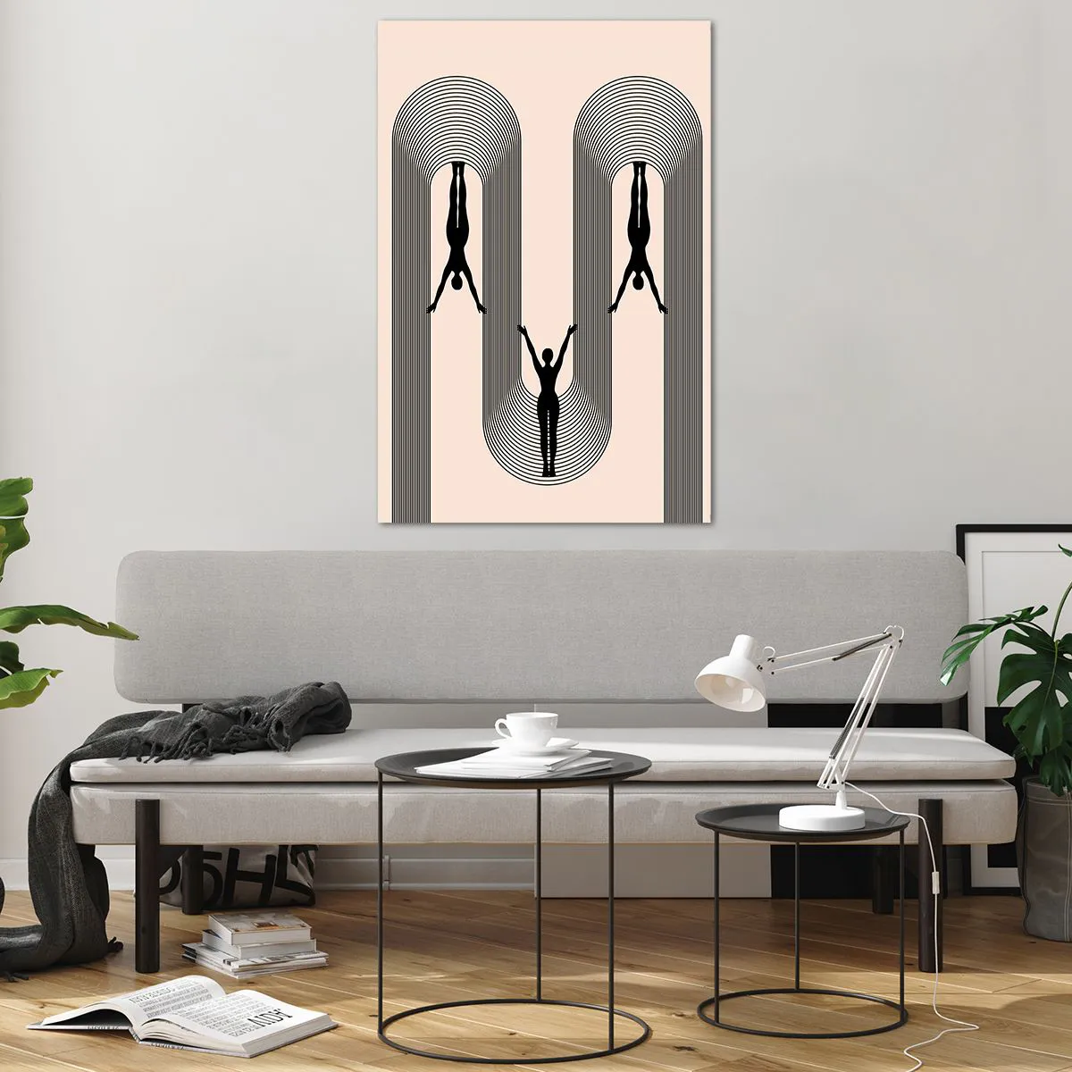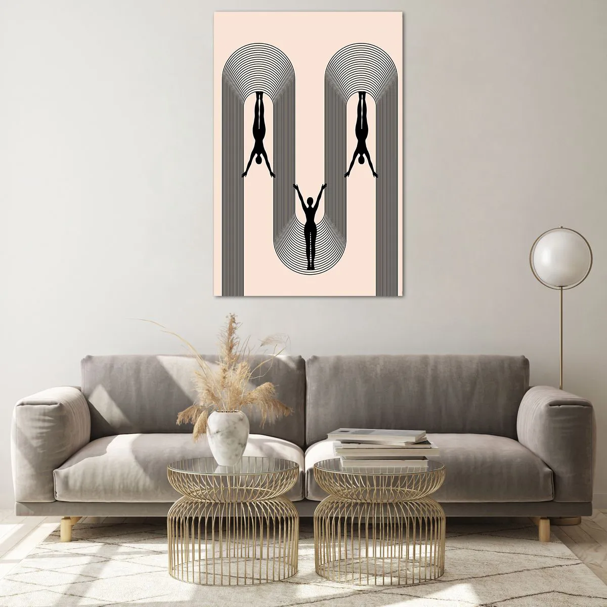 Glasbild - Bild auf glas - Geometrische Silhouetten auf beigem Hintergrund - 80x120cm - Verkehrt herum - Moderne Wanddekoration für Wohnzimmer und Schlafzimmer ARTTOR