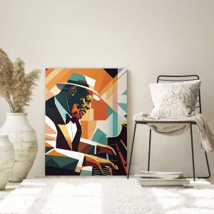 Glasbild - Bild auf glas - Ein farbenfrohes Porträt eines Jazz-Pianisten - 100x70cm - Alles vom Jazz - Moderne Wanddekoration für Wohnzimmer und Schlafzimmer ARTTOR