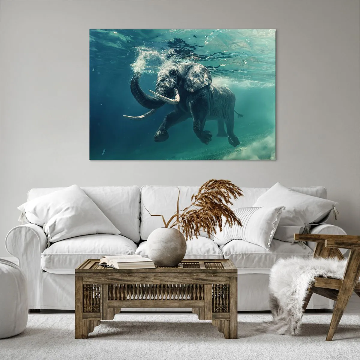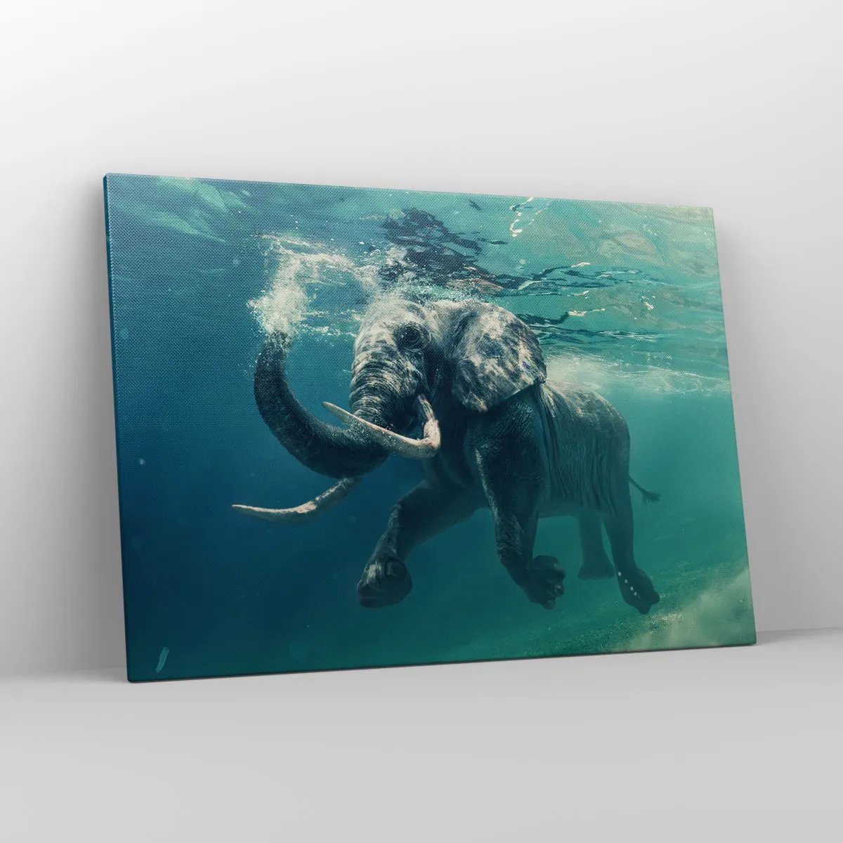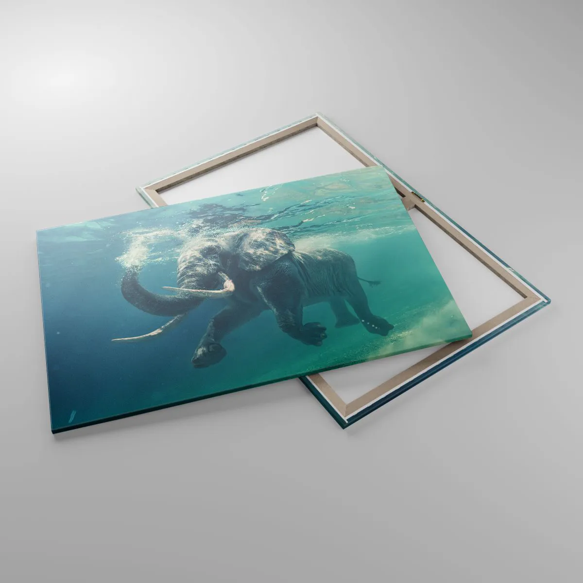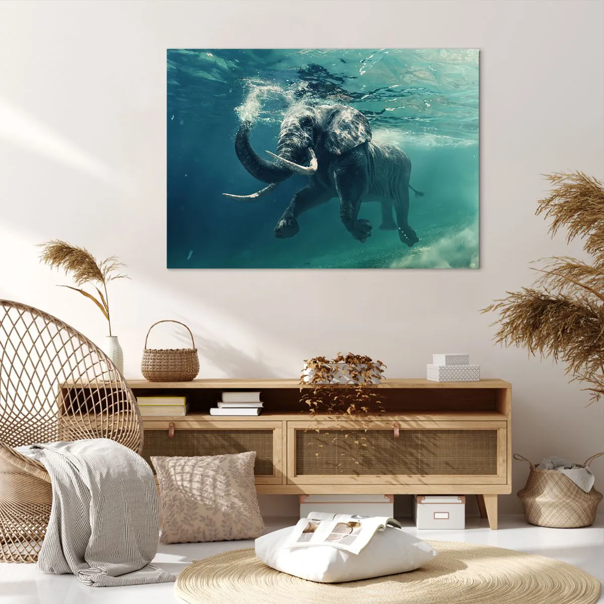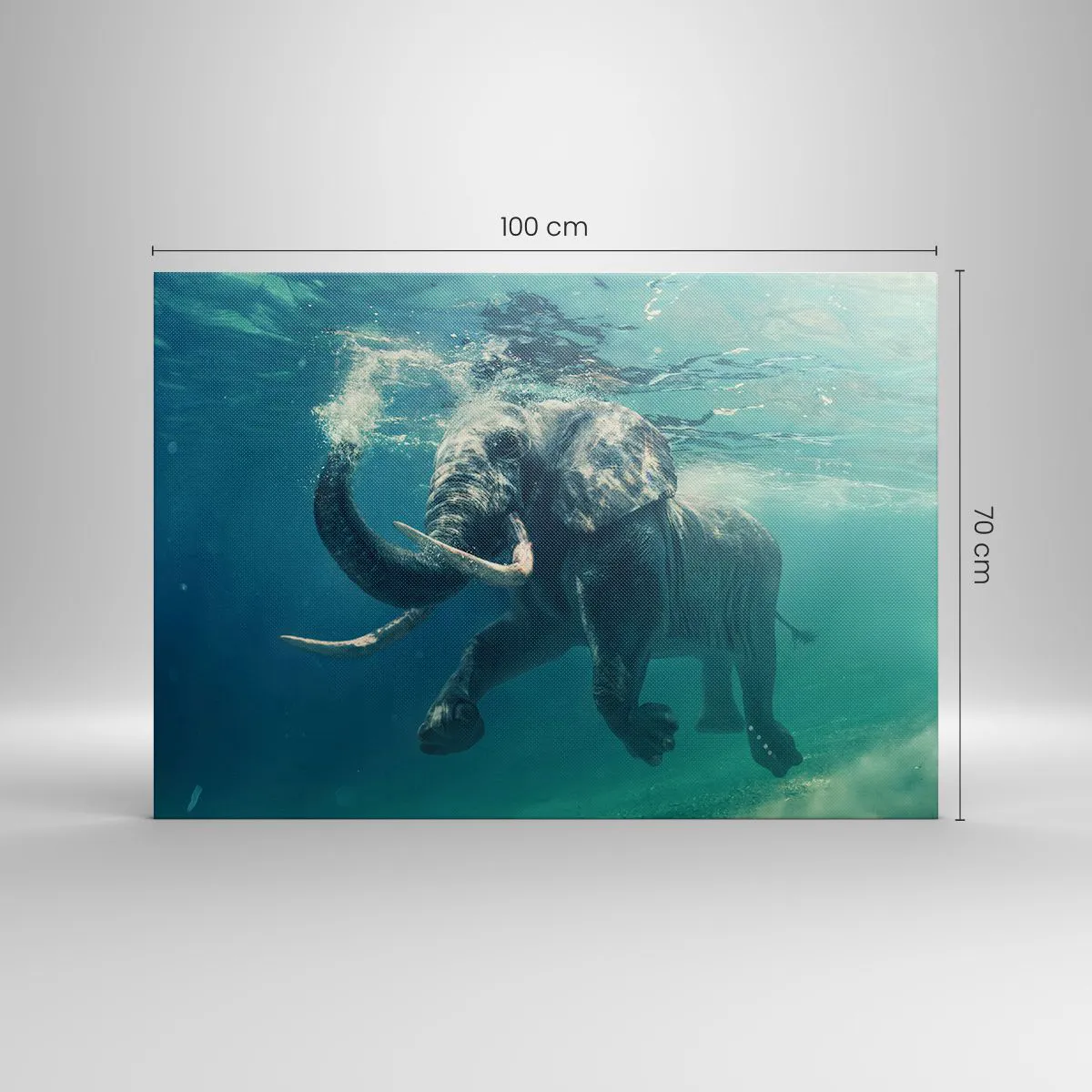 Bild auf Leinwand - Leinwandbild - Ein Elefant schwimmt unter Wasser in den türkisfarbenen Tiefen - 100x70cm - Jeder schwimmt gerne - Moderne Wanddekoration für Wohnzimmer und Schlafzimmer ARTTOR