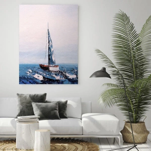 Glasbild - Bild auf glas - Segelboote auf stürmischer See in malerischer Komposition - 80x120cm - Bruderschaft des Windes - Moderne Wanddekoration für Wohnzimmer und Schlafzimmer ARTTOR