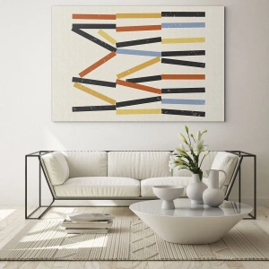 Glasbild - Bild auf glas - Abstrakte Komposition mit farbigen und schwarzen Rechtecken in horizontaler Anordnung - 80x120cm - Komposition auf der Ebene - Moderne Wanddekoration für Wohnzimmer und Schlafzimmer ARTTOR