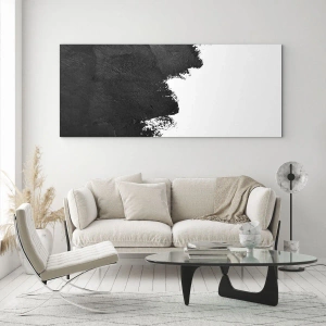 Glasbild - Bild auf glas - Schwarz-Weiß-Abstraktion mit kontrastierenden Pinselstrichen - 140x50cm - Elemente: Erde - Moderne Wanddekoration für Wohnzimmer und Schlafzimmer ARTTOR