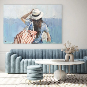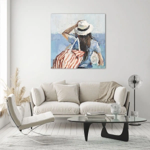 • Strand, Frau, Nautisch, Menschen, Nautik, Pastell, Kunst, Für das Büro, für das Arbeitszimmer, für das Esszimmer, für den Flur, für das Wohnzimmer, für das Schlafzimmer, Weiß, Rot, Blau, Quadrat