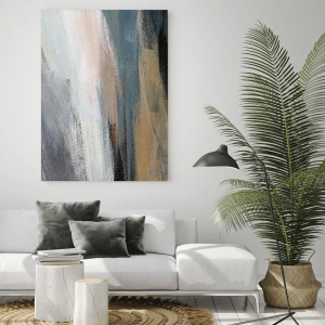 Glasbild - Bild auf glas - Abstrakte Landschaft in gedämpften Blau- und Beigetönen - 140x50cm - Abstraktion: nördliche Landschaft - Moderne Wanddekoration für Wohnzimmer und Schlafzimmer ARTTOR