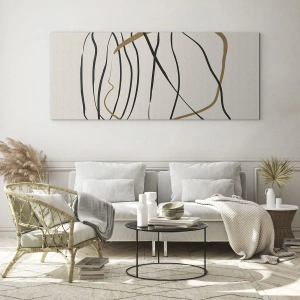 Glasbild - Bild auf glas - Eine ausdrucksstarke Linienkomposition in Schwarz und Braun auf hellem Hintergrund. - 70x50cm - Komposition – Looptanz - Moderne Wanddekoration für Wohnzimmer und Schlafzimmer ARTTOR