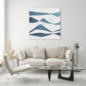 Glasbild - Bild auf glas - Abstrakte Formen in Blautönen auf weißem Hintergrund - 120x50cm - Abstraktion: türkisfarbene Verbindung - Moderne Wanddekoration für Wohnzimmer und Schlafzimmer ARTTOR