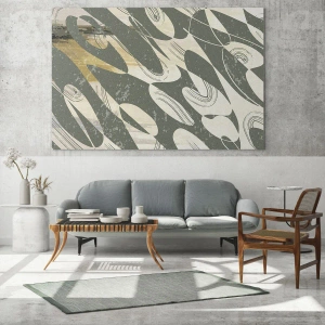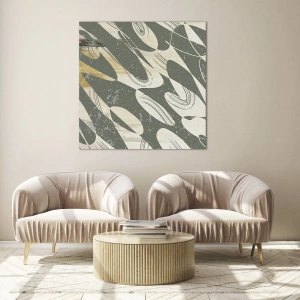 Glasbild - Bild auf glas - Dynamische Formen in Grün- und Goldtönen - 70x100cm - Rhythmische Abstraktion - Moderne Wanddekoration für Wohnzimmer und Schlafzimmer ARTTOR