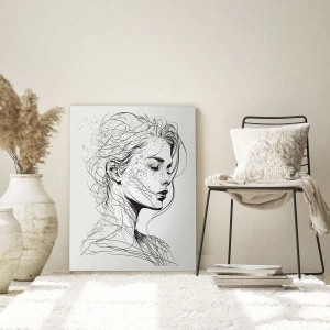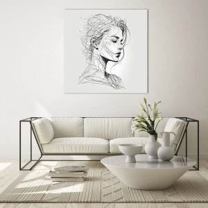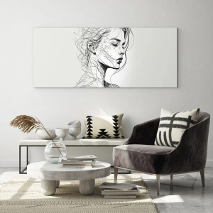 Glasbild - Bild auf glas - Ein zartes Frauenporträt im minimalistischen Grafikstil. - 160x50cm - Porträt im Gedanken - Moderne Wanddekoration für Wohnzimmer und Schlafzimmer ARTTOR