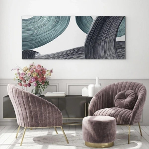 Glasbild - Bild auf glas - Dynamische Streifen in Smaragd- und Schwarztönen auf weißem Hintergrund - 100x70cm - Smaragdgrüne und schwarze Pfade - Moderne Wanddekoration für Wohnzimmer und Schlafzimmer ARTTOR