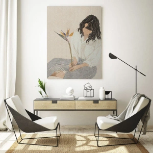 Glasbild - Bild auf glas - Porträt mit einer exotischen Blume - 80x120 cm