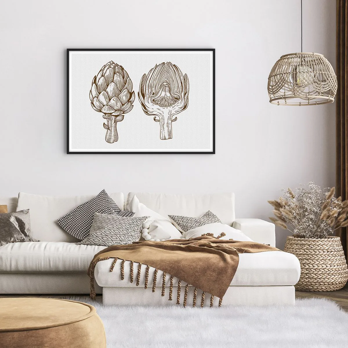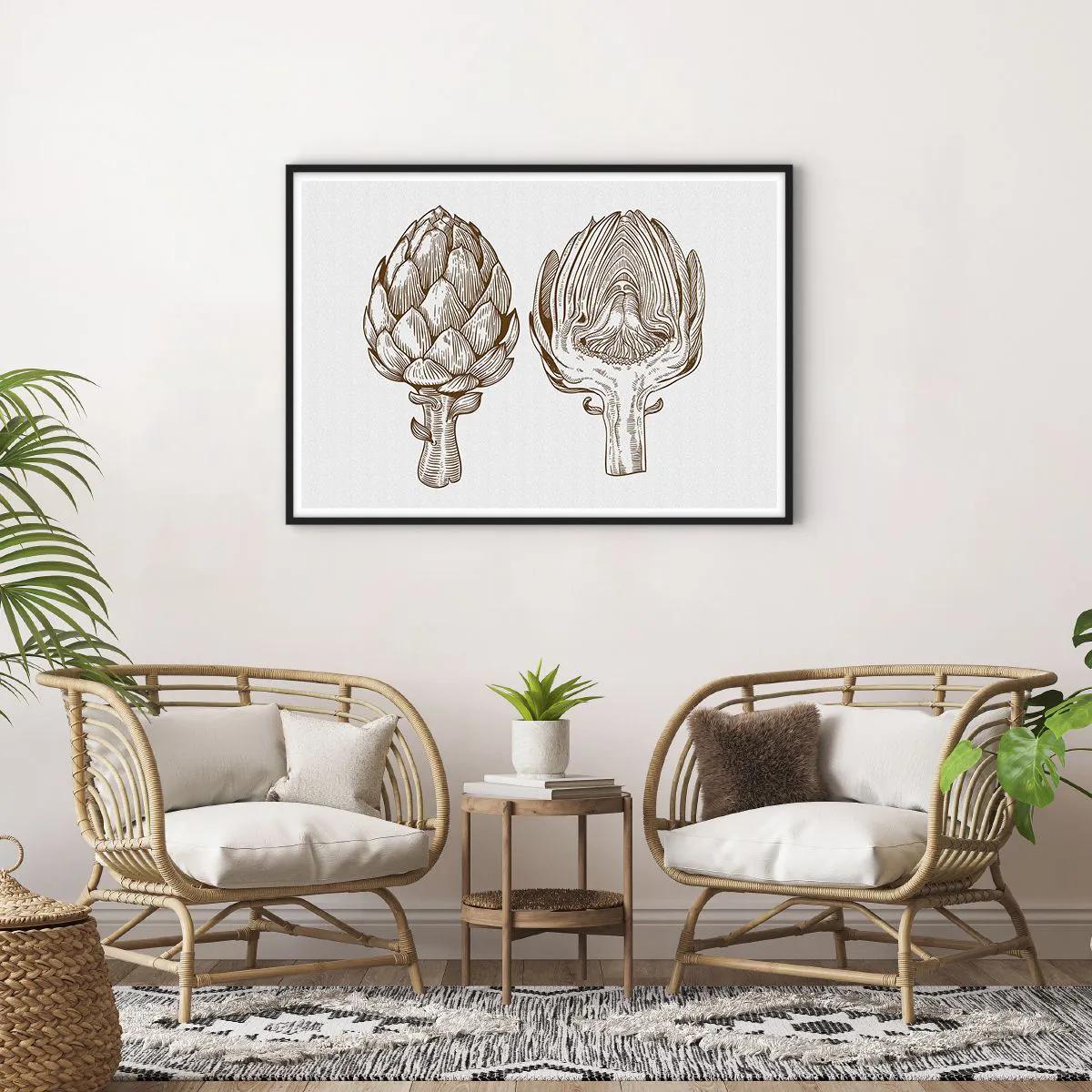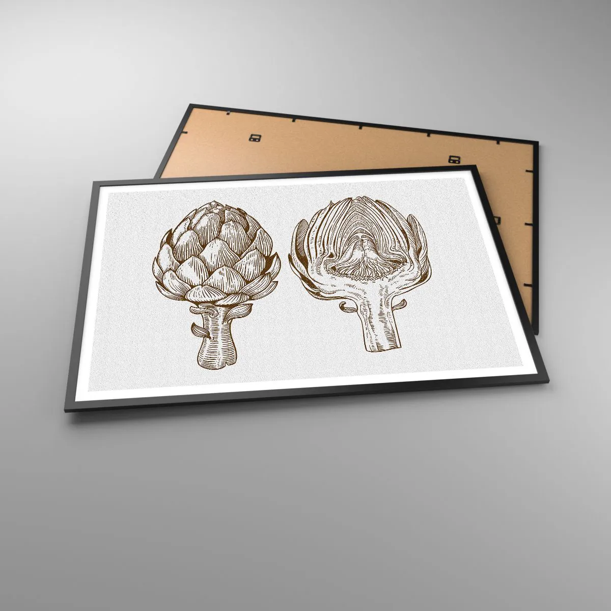 Poster in einem schwarzem Rahmen - Vintage Kunstzeichnung einer Artischocke - 100x70cm - Anatomie-Lektion - Moderne Wanddekoration für Wohnzimmer und Schlafzimmer ARTTOR
