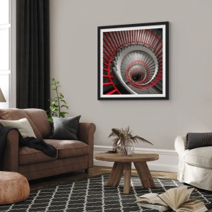 Poster in einem schwarzem Rahmen - Wendeltreppe in Schwarz und Weiß mit roten Handläufen - 50x70cm - Architekturspaß - Moderne Wanddekoration für Wohnzimmer und Schlafzimmer ARTTOR