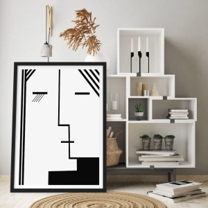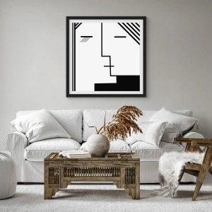 Poster in einem schwarzem Rahmen - Geometrische Abstraktion eines Kusses in Schwarz und Weiß - 100x70cm - Einfach ein Kuss - Moderne Wanddekoration für Wohnzimmer und Schlafzimmer ARTTOR