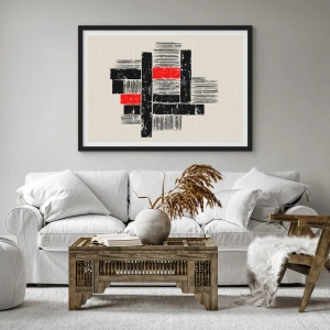 Poster in einem schwarzem Rahmen - Geometrische Abstraktion in Schwarz, Rot und Beige - 50x70cm - Rot und Schwarz - Moderne Wanddekoration für Wohnzimmer und Schlafzimmer ARTTOR