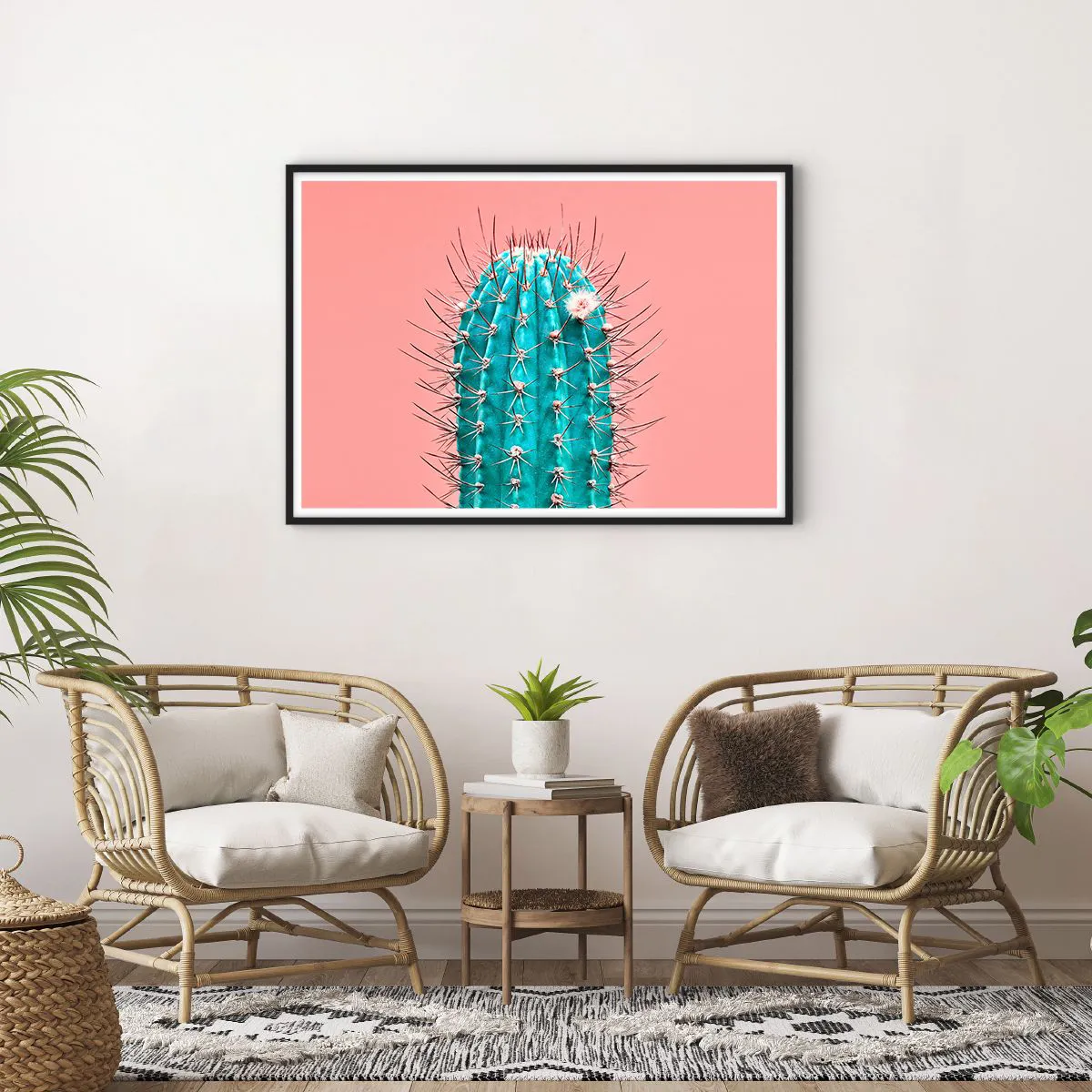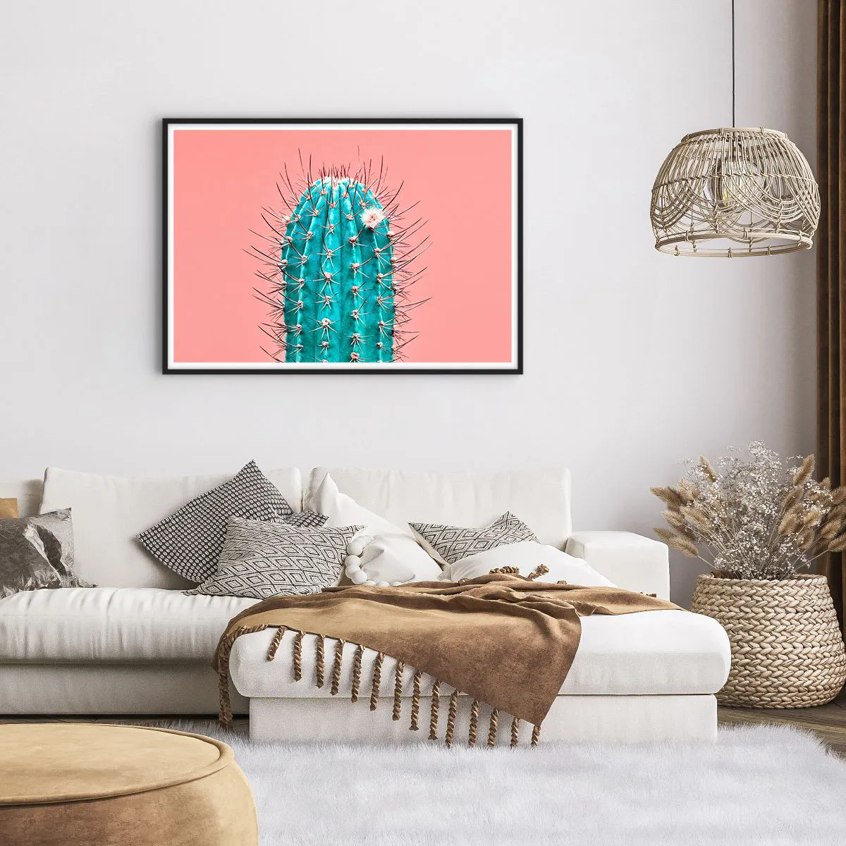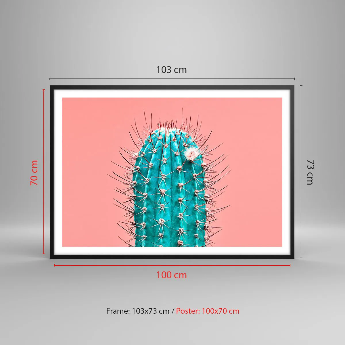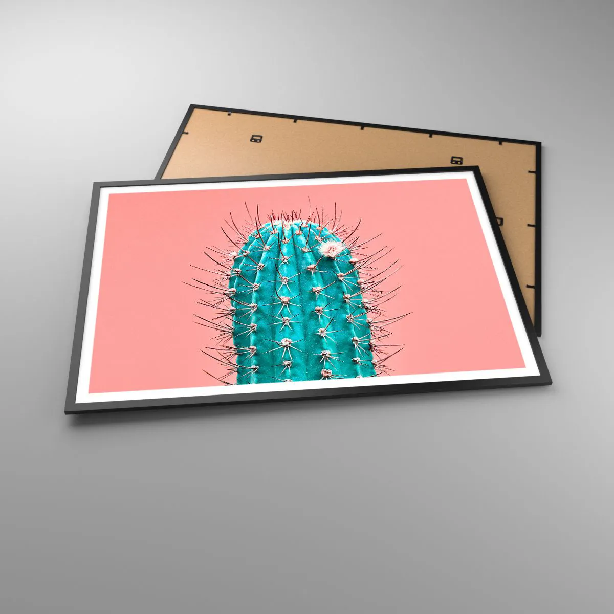Poster in einem schwarzem Rahmen - Eine künstlerische Interpretation eines Kaktus auf rosa Hintergrund - 100x70cm - Schau einfach hin - Moderne Wanddekoration für Wohnzimmer und Schlafzimmer ARTTOR