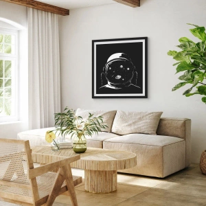 Poster in einem schwarzem Rahmen - Ein minimalistischer Astronautenhelm mit Blick ins Weltall - 70x50cm - Schöne Aussicht - Moderne Wanddekoration für Wohnzimmer und Schlafzimmer ARTTOR