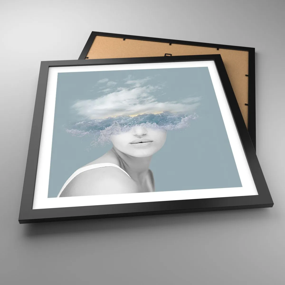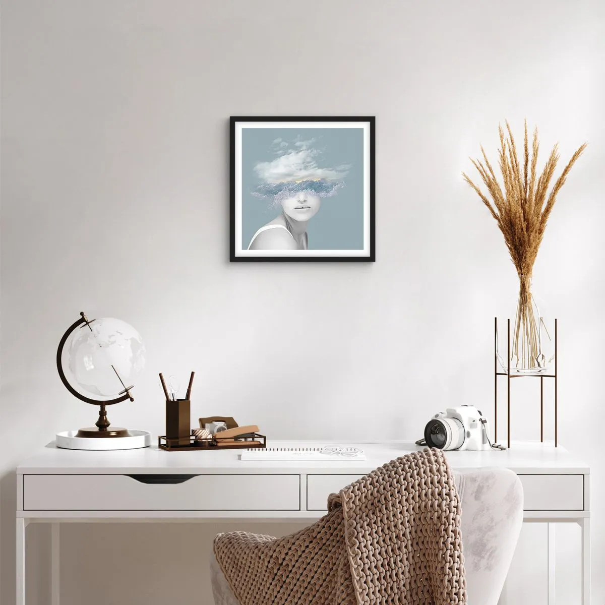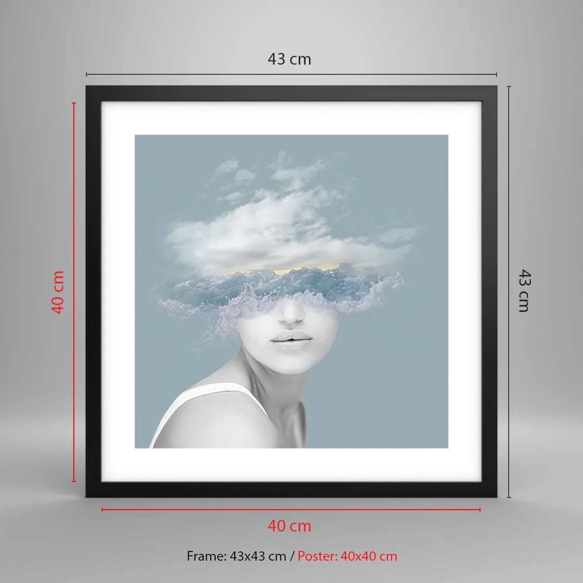 Poster in einem schwarzem Rahmen - Mit dem Kopf in den Wolken - 40x40 cm