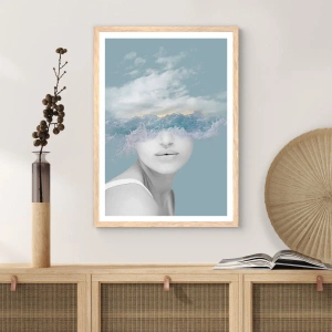 Poster in einem Rahmen aus heller Eiche - Mit dem Kopf in den Wolken - 40x40 cm