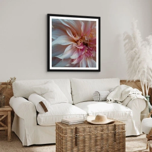 Poster in einem schwarzem Rahmen - Nahaufnahme von zarten rosa Blütenblättern mit Wassertropfen - 70x50cm - Blühende Frische - Moderne Wanddekoration für Wohnzimmer und Schlafzimmer ARTTOR