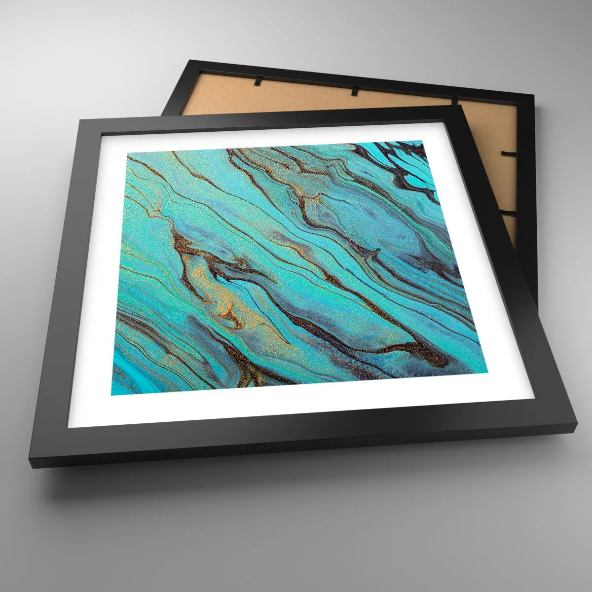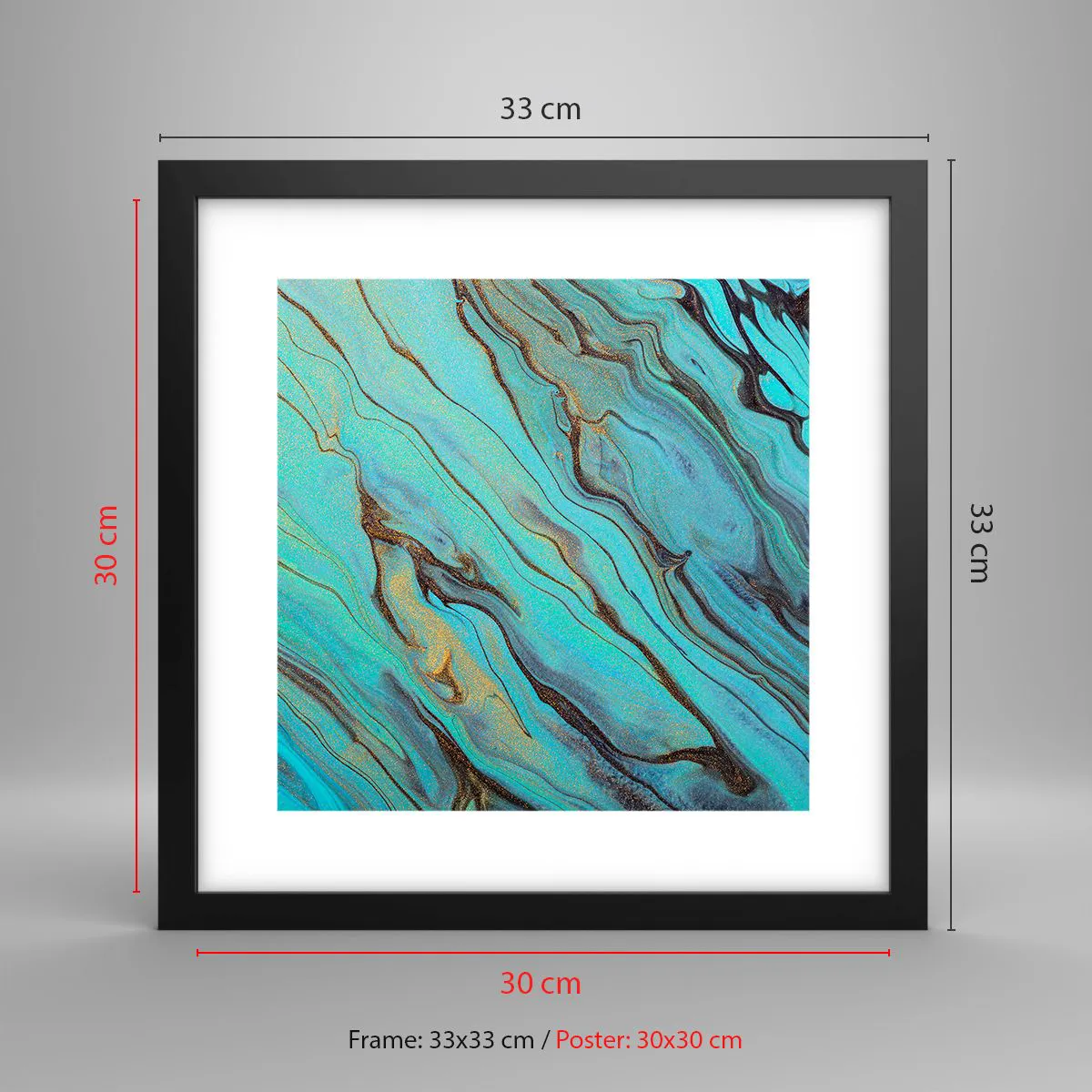Poster in einem schwarzem Rahmen - Türkisfarbene Flut - 30x30 cm