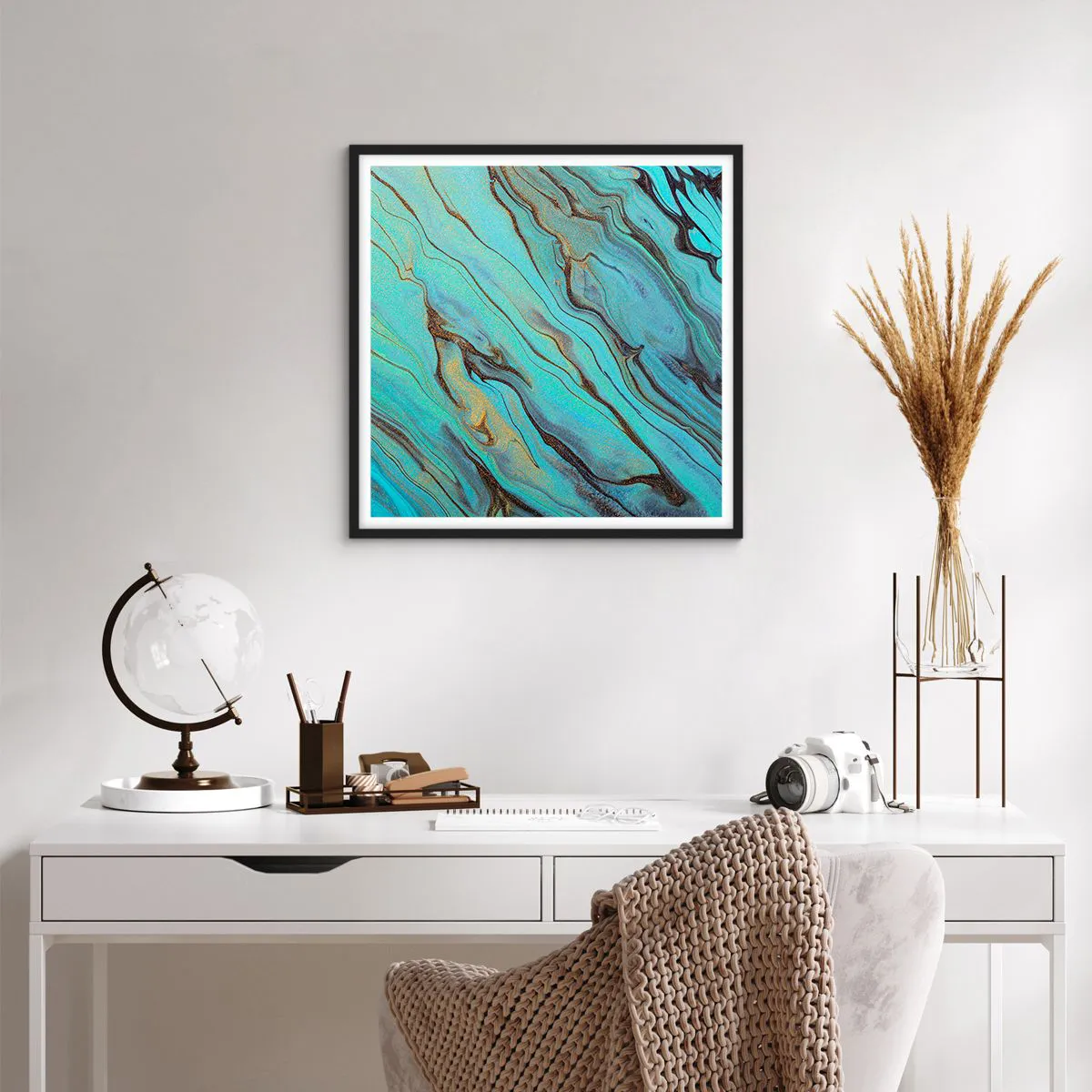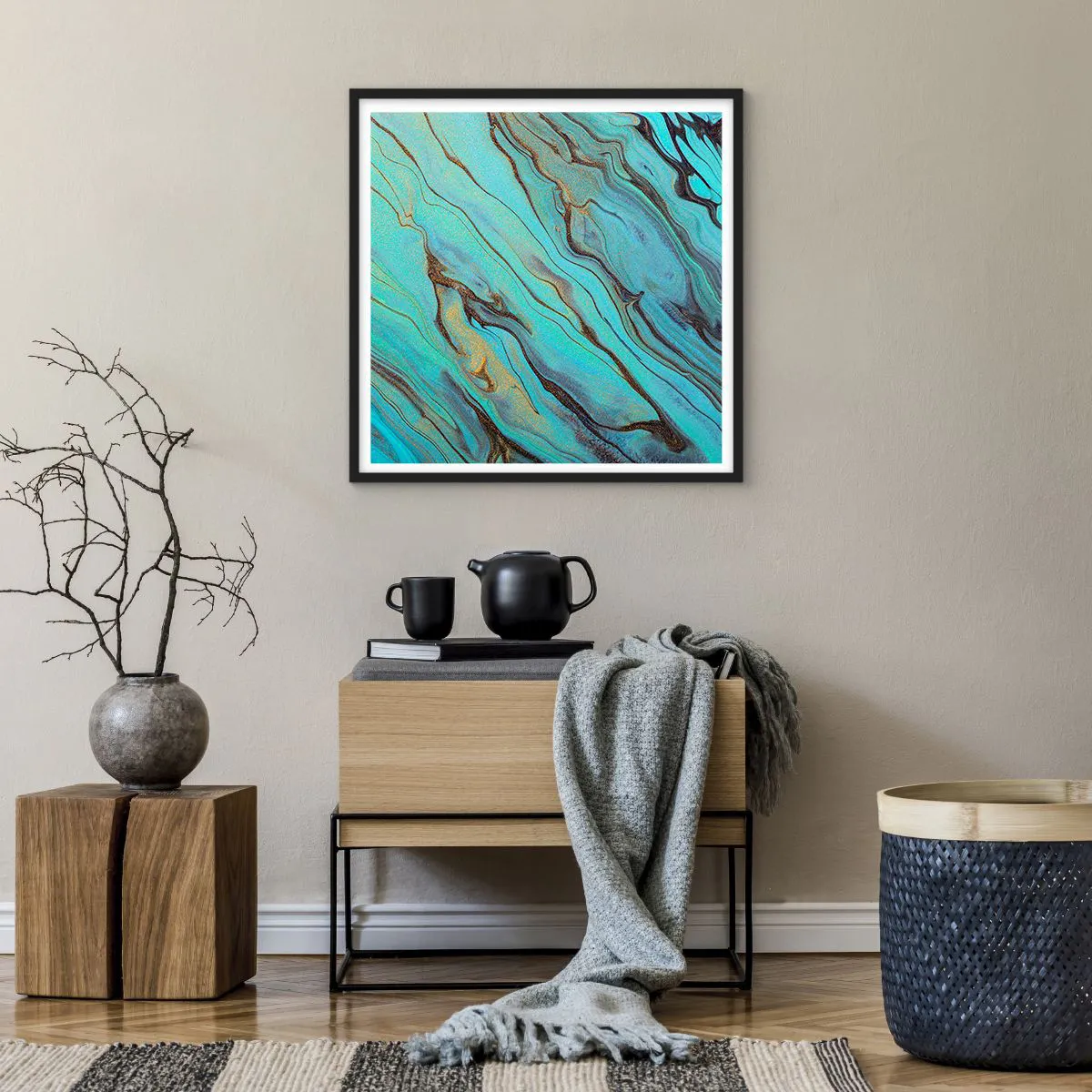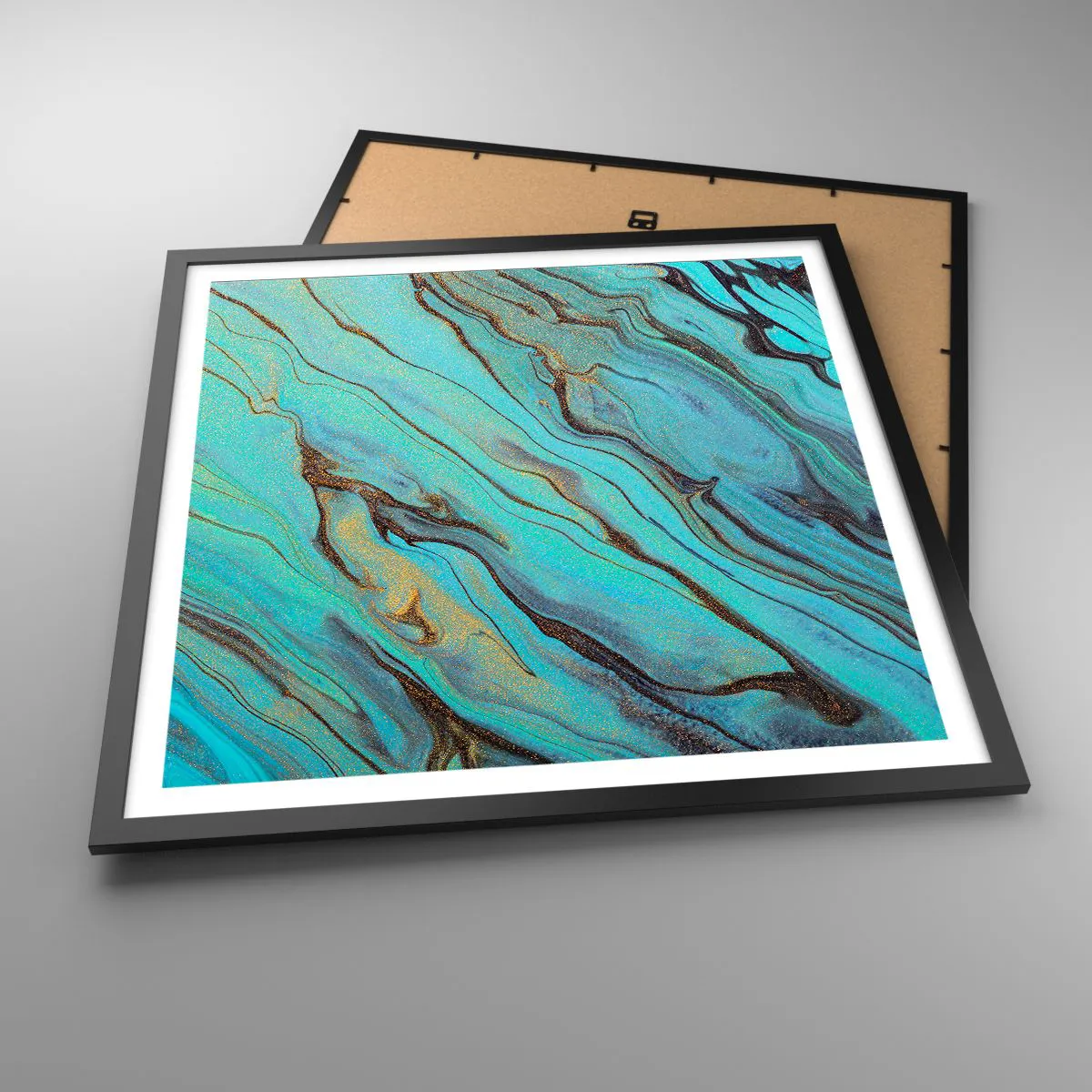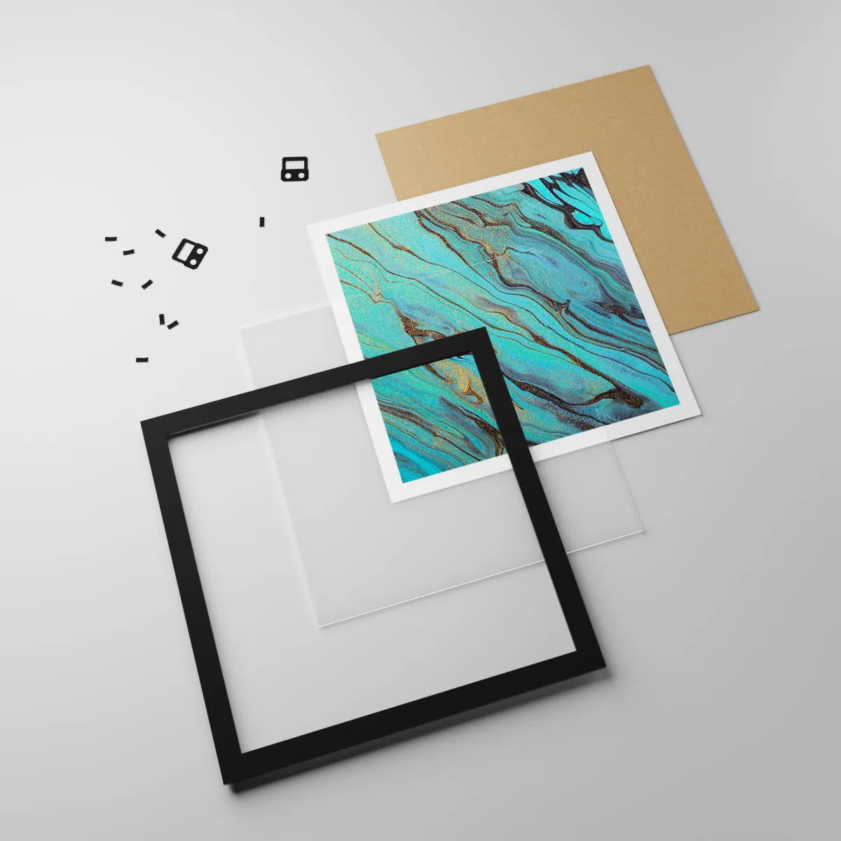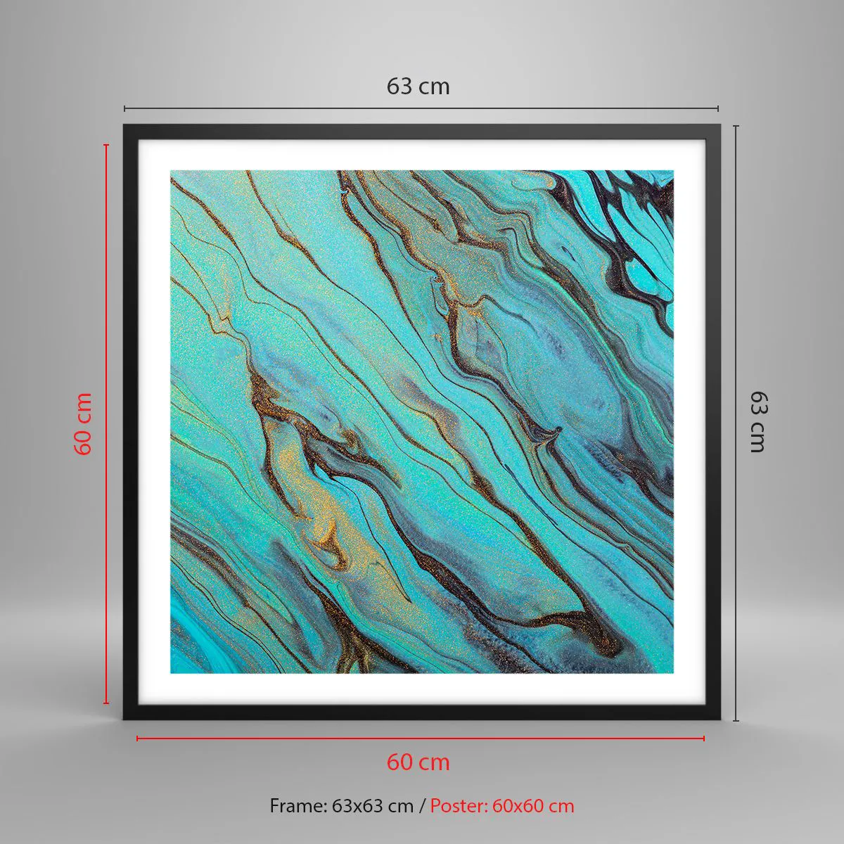 Poster in einem schwarzem Rahmen - Türkisfarbene Flut - 60x60 cm