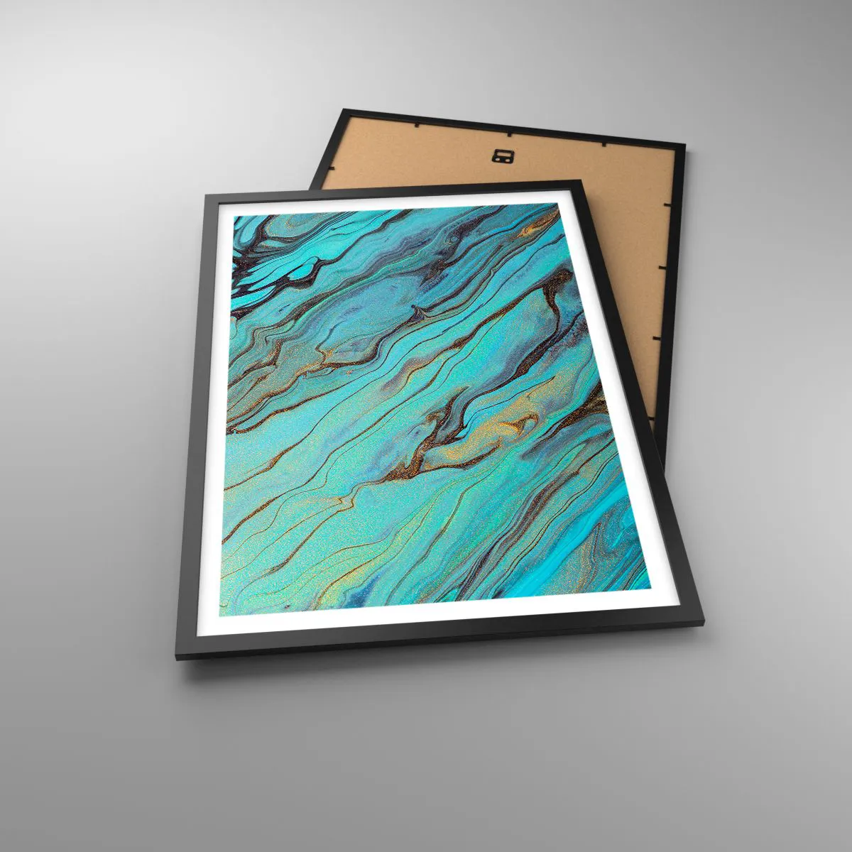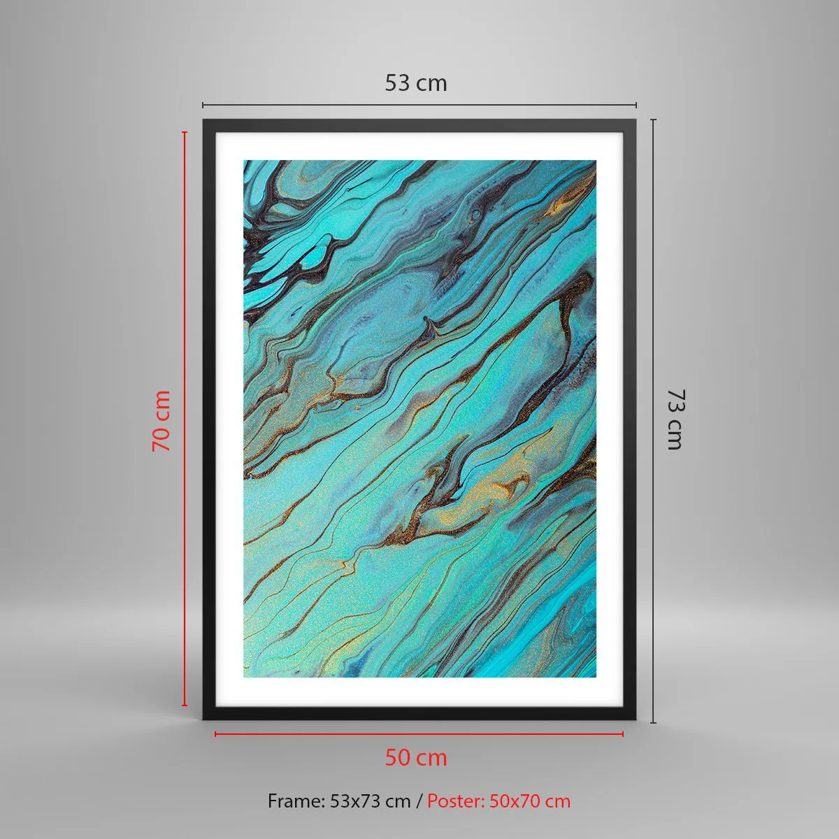 Poster in einem schwarzem Rahmen - Abstrakte Muster in Türkis- und Goldtönen - 50x70cm - Türkisfarbene Flut - Moderne Wanddekoration für Wohnzimmer und Schlafzimmer ARTTOR