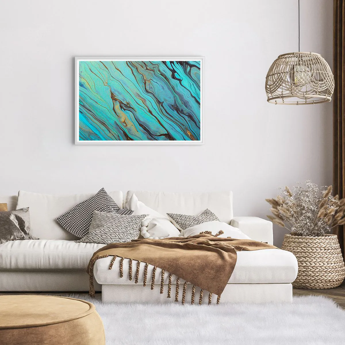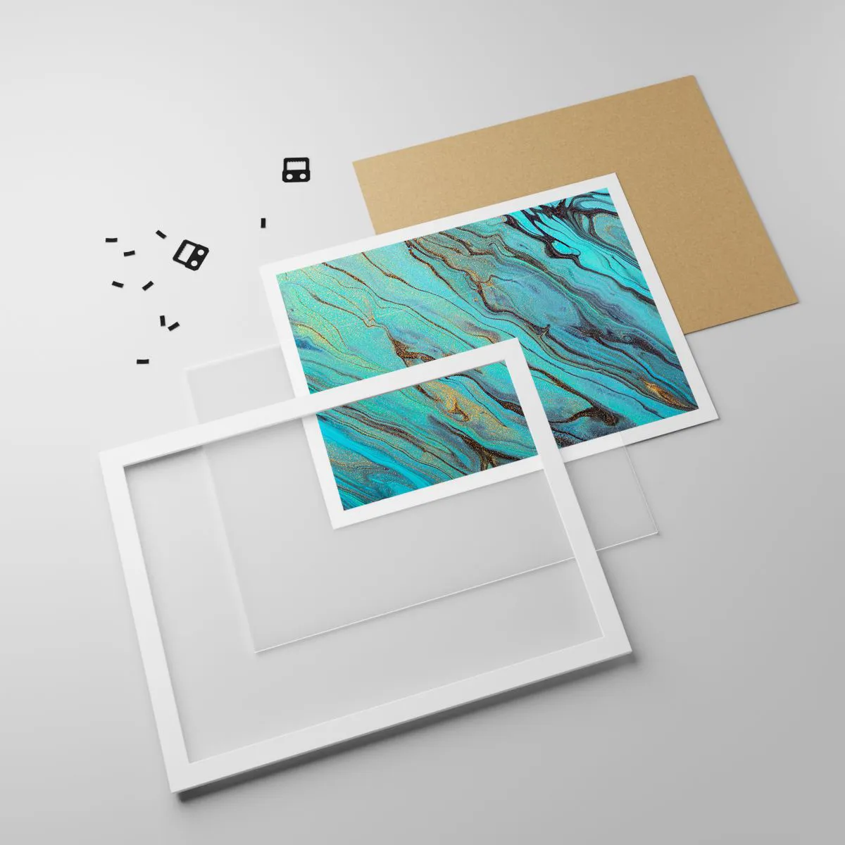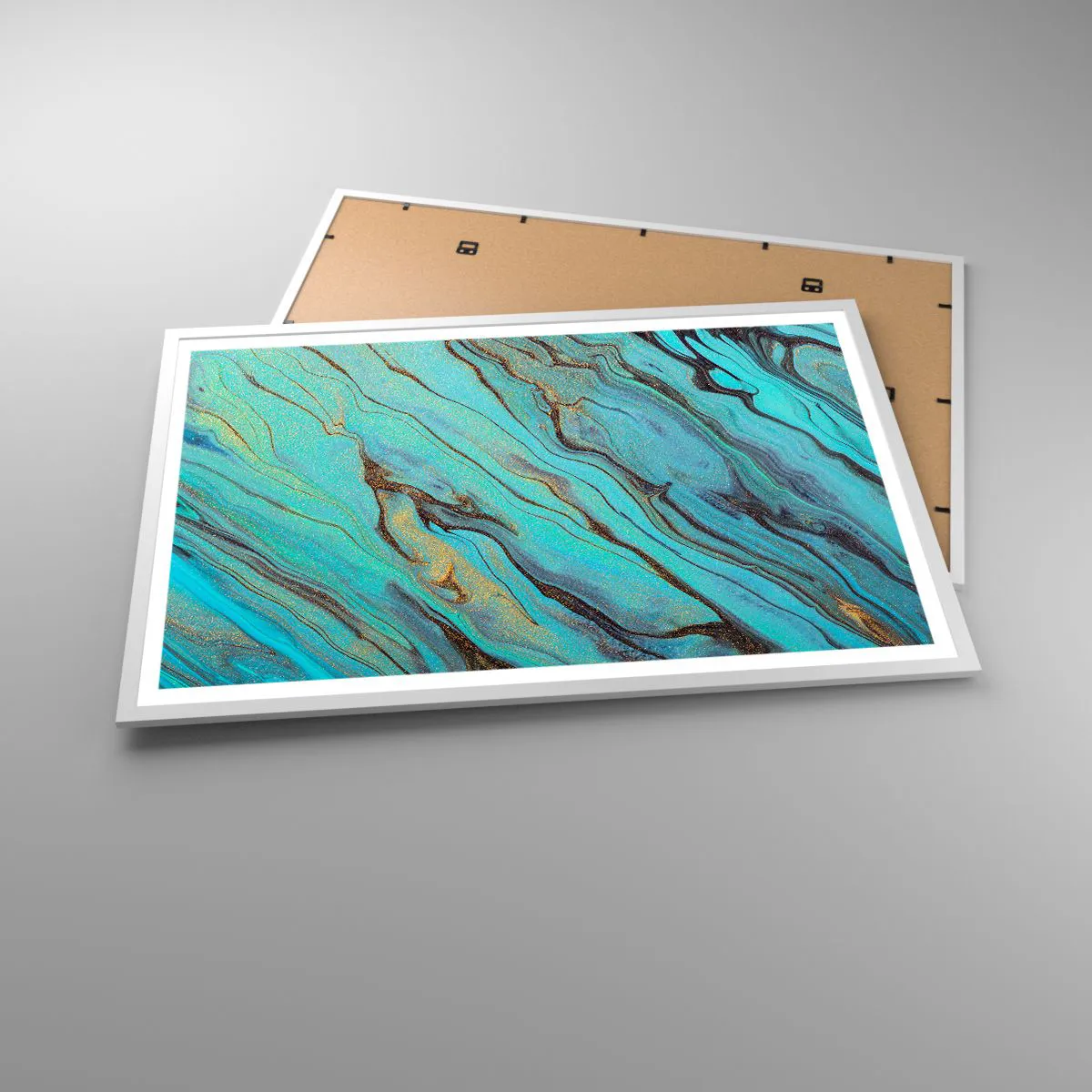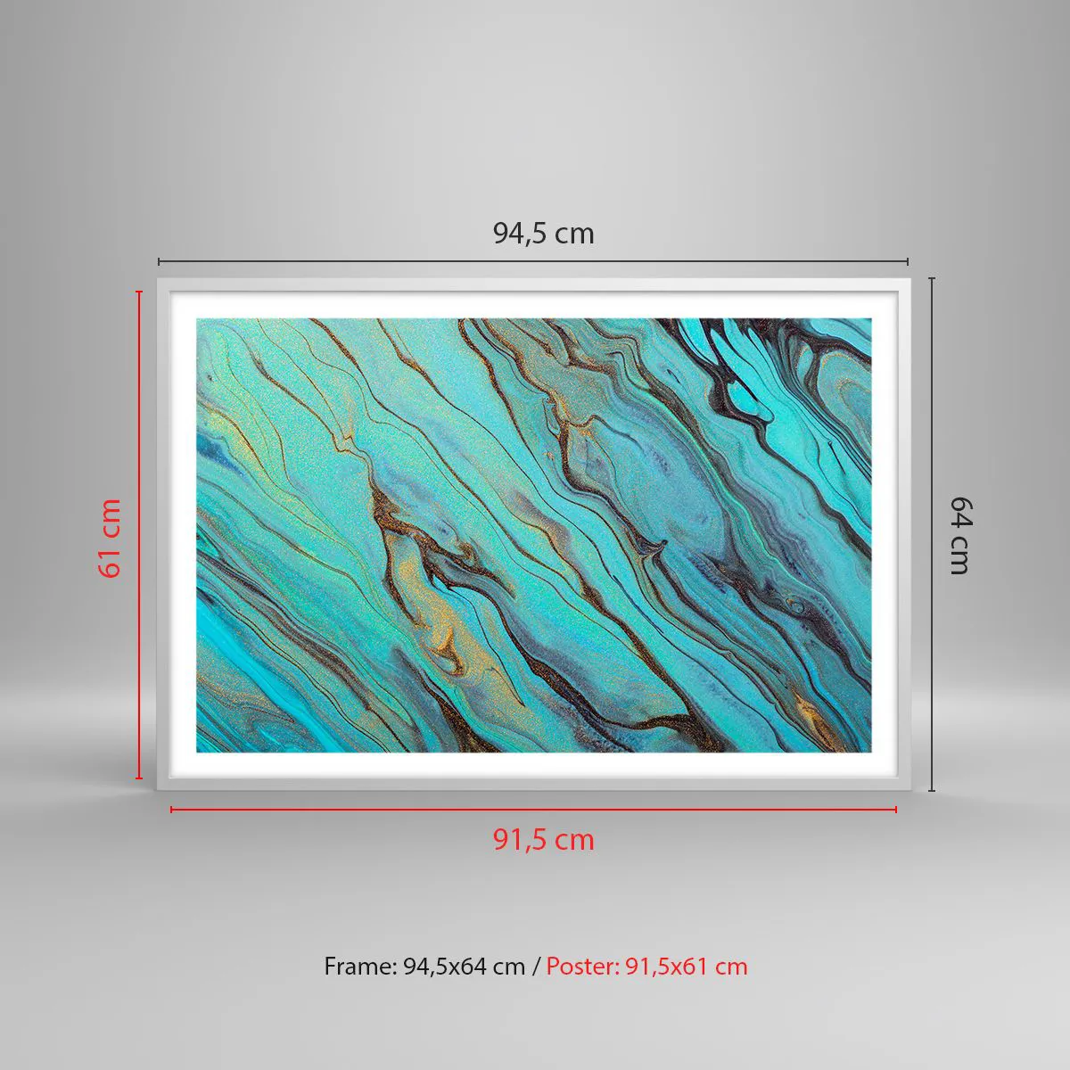 Poster in einem weißen Rahmen - Türkisfarbene Flut - 91x61 cm
