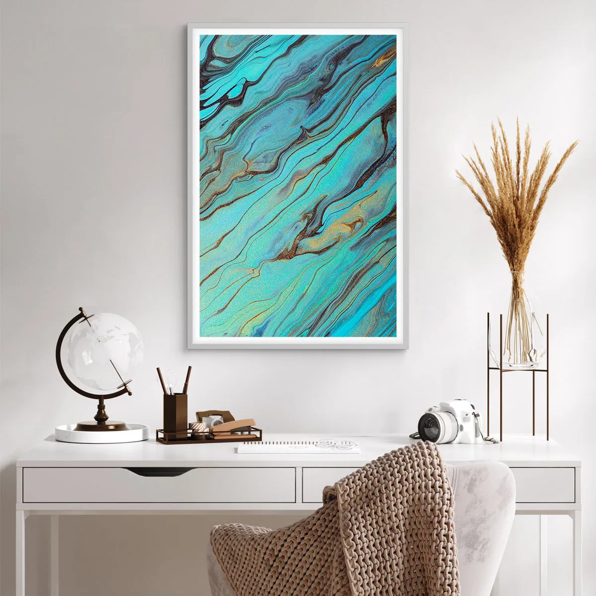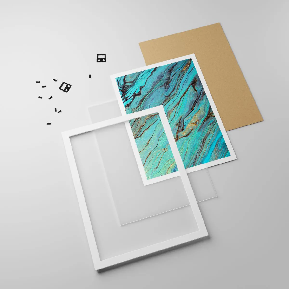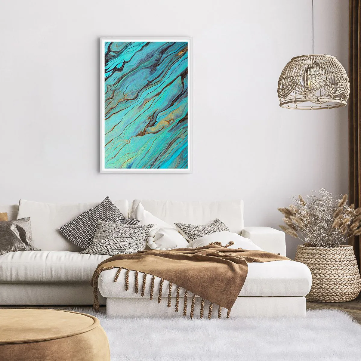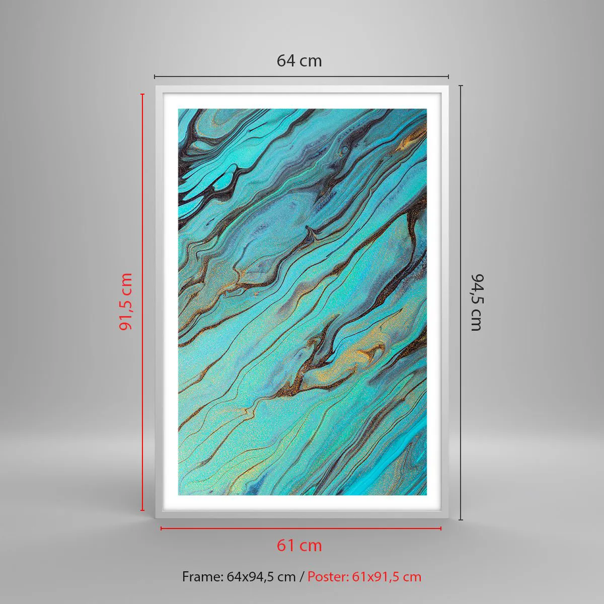 Poster in einem weißen Rahmen - Türkisfarbene Flut - 61x91 cm