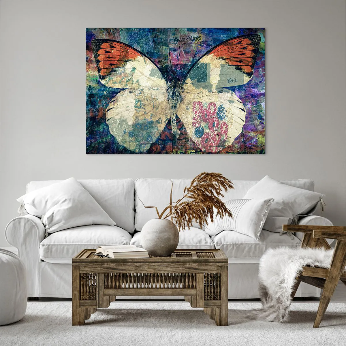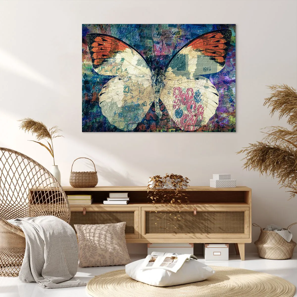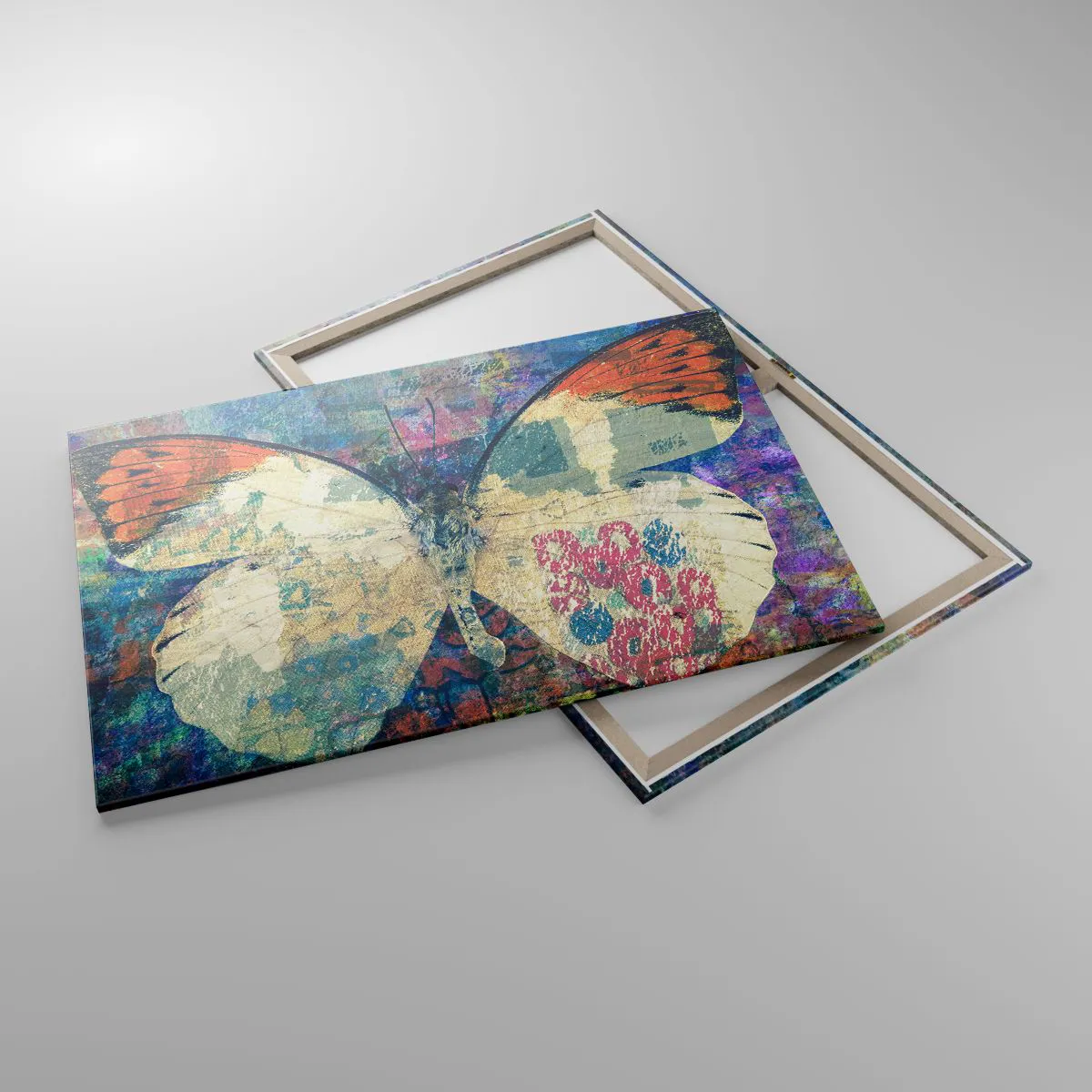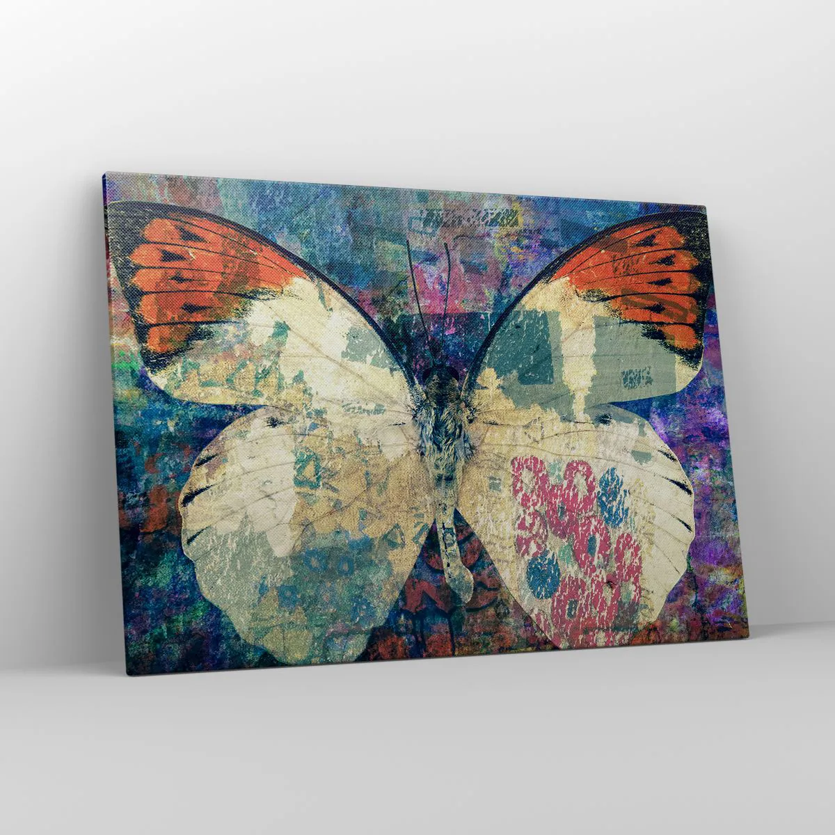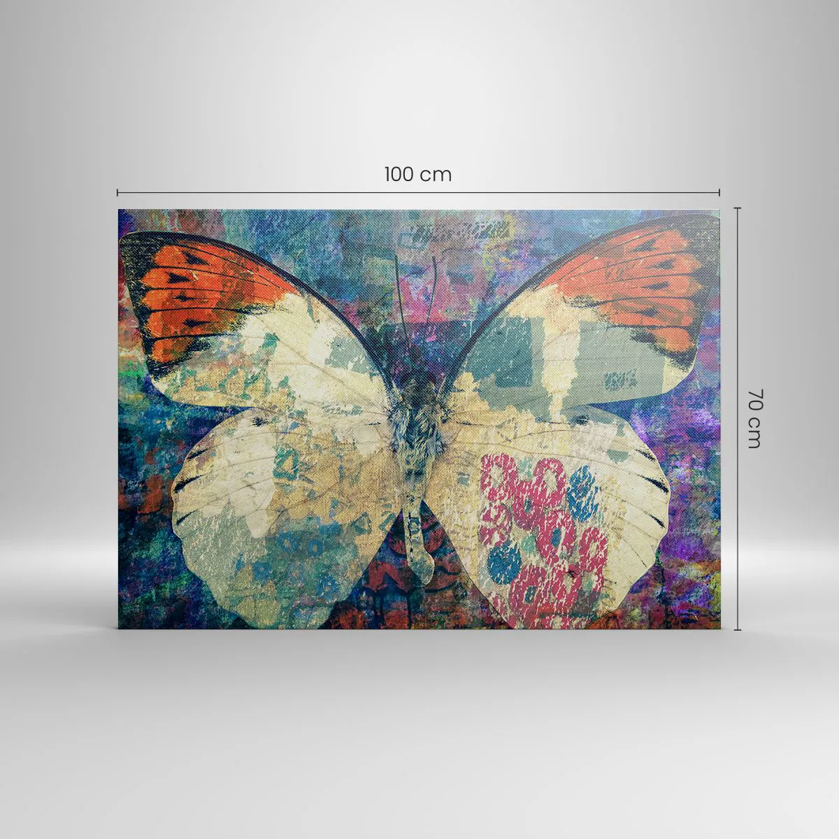 Bild auf Leinwand - Leinwandbild - Schmetterling in einem abstrakten künstlerischen Hintergrund mit bunten Details - 100x70cm - Subtile Zerbrechlichkeit - Moderne Wanddekoration für Wohnzimmer und Schlafzimmer ARTTOR