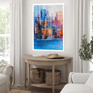 Poster - Ein farbenfrohes Panorama der Stadt mit Spiegelungen auf dem Wasser - 100x70cm - Fröhliche Metropole - Moderne Wanddekoration für Wohnzimmer und Schlafzimmer ARTTOR