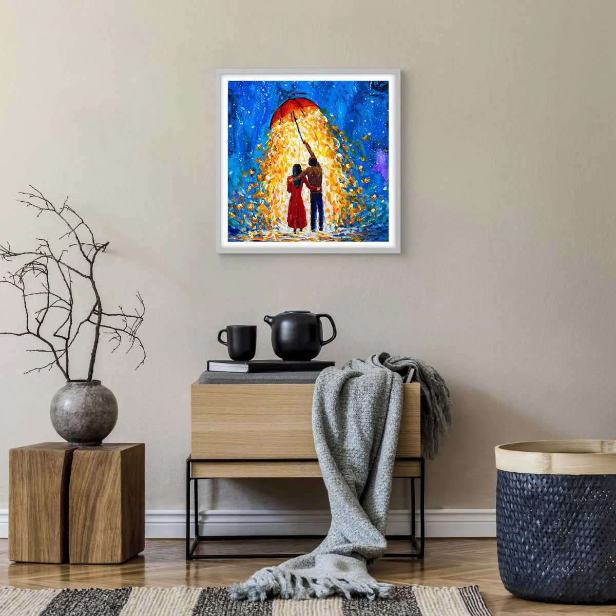 Poster in einem weißen Rahmen - Zauber eines Regenabends? - 50x50 cm